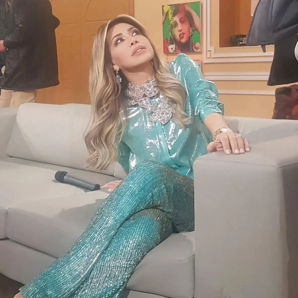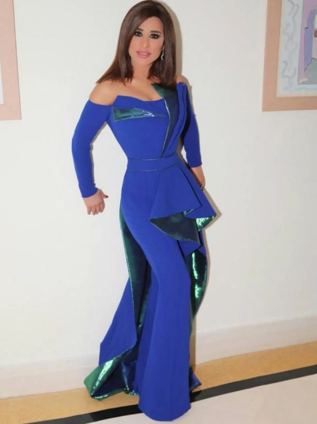 ولكن، ومن خلال مراقبتنا لإطلالات بعض النجمات العربيّات، لاحظنا أنّ اللون الأزرق كان المشترك بينهنّ جميعًا، في الفترة الأخيرة، فاختارته كلّ نجمة لإطلالتها، فتميزت النجمة نوال الزغبي بارتدائها سروالًا باللون الأزرق الفاتح، بتصميم عريض من الأسفل، مع سترة بتصميم كلاسيكيّ أنيق من اللون الأزرق اللّامع.