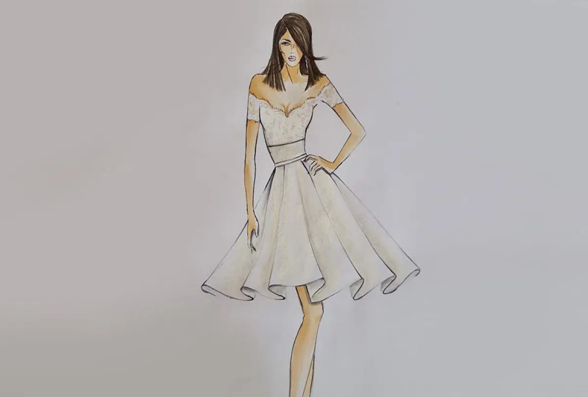 رسم المصمم أنطوان القارح لفستان وفاء الكيلاني