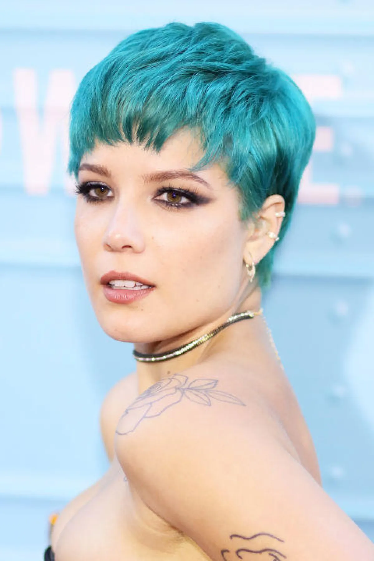 واذا كنتِ تحبّين الغرابة في الصبغات، فالشعر القصير يُعتبر مثاليًّا للّون الأزرق، مثل هالسي Halsey البلاتينيوم، على غرار جنيفر لورنس Jennifer Lawrence إضافة الى أجمل طرق تطبيق الأومبريه.