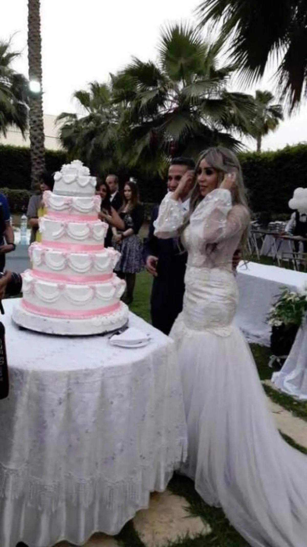 وظهرت العروس بفستان أبيض ذي أكمام شفّافة وتسريحة شعر منسدلة، وقد أثار زواجها المفاجىء بلبلة واسعة على مواقع التواصل الاجتماعي.