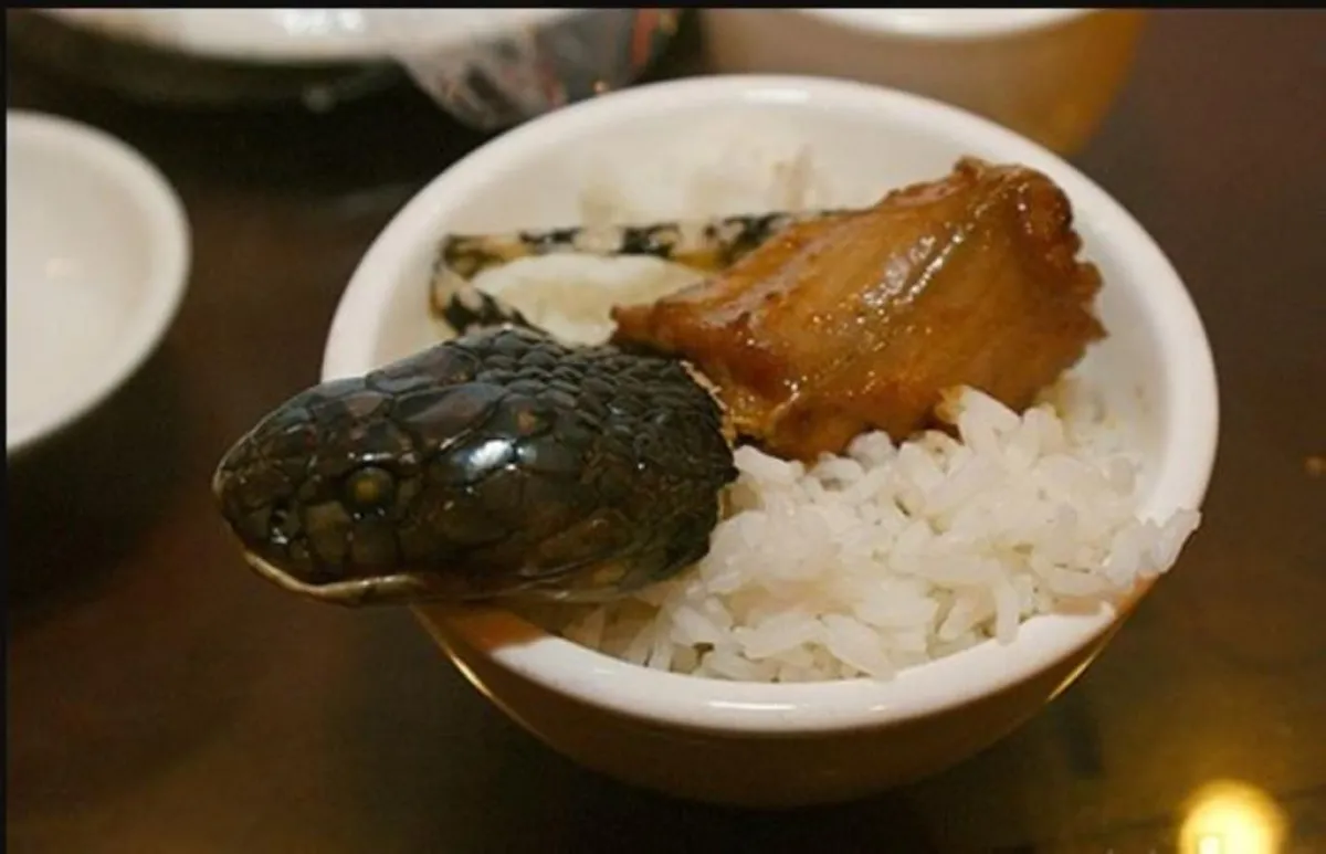 من المعروف لدى الجميع أن الصينيين من الشعوب التي تتناول المأكولات والأطعمة الغريبة نوعًا ما، بما في ذلك لحوم الزواحف من «الأفاعي والسحالي والضفادع والسلاحف»، ولا يبدو لديهم أن هذا الشيء محرمٌ أو مستهجنٌ؛ كون الناس قادرين على تناول كل شيء، وكل ما يلزم لإبقاء مليار نسمة على قيد الحياة، ويعتقد الصينيون أن «لحوم الزواحف» مفيدة لمعالجة بعض الأمراض.