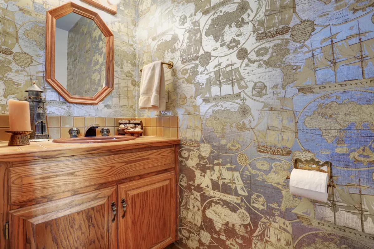 8. تجنّب استخدام ورق الحائط في ديكور الحمّام، فرغم جماليته تفسده الرطوبة بسرعة. ولكن عند الرغبة بالأمر، يجب التأكد من أنّه ملصق بطريقة جيدة، كما من وجود التهوية الكافية له.
