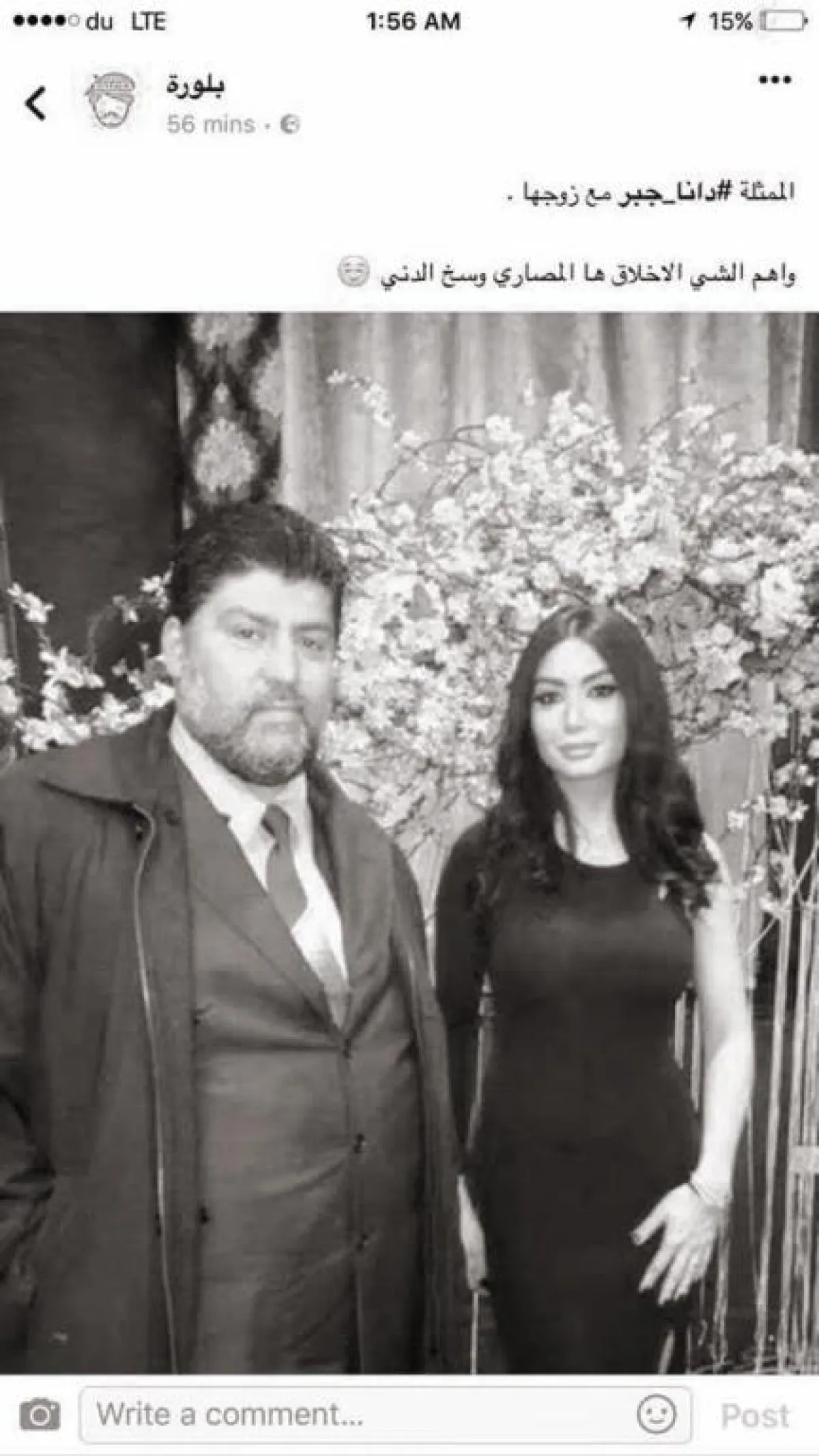 وقالت دانا في تعليق نشرته على صفحتها الخاصة على " فيسبوك "، مع الصورة التي نشرتها الصفحات : هادا مو جوزي، ويلي نزّل الصورة حيوان وتافه " .