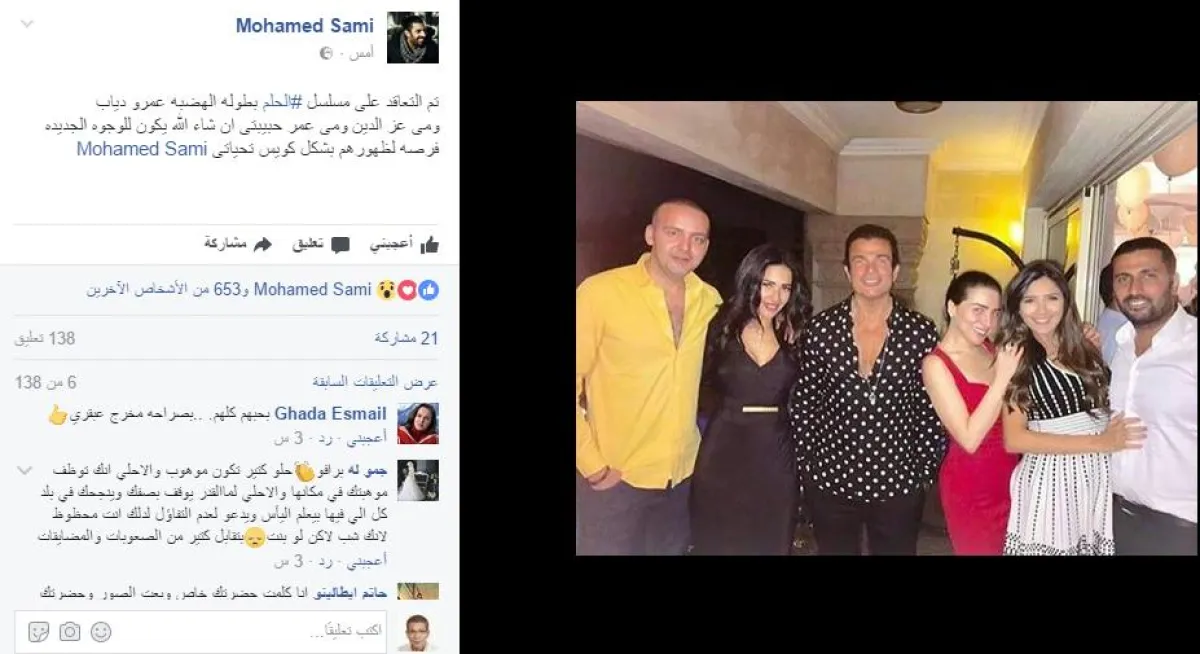 سامي نشر صورة تجمعه بالهضبة ومي عز الدين ومي عمر من كواليس حفل زفاف ابنة الفنانة المعتزلة منى عبد الغني وعلق عليها قائلاً: "تم التعاقد على مسلسل الحلم بطولة الهضبة عمرو دياب ومي عز الدين ومي عمر حبيبتي ان شاء الله يكون للوجوه الجديدة فرصة لظهورهم بشكل كويس تحياتي ".