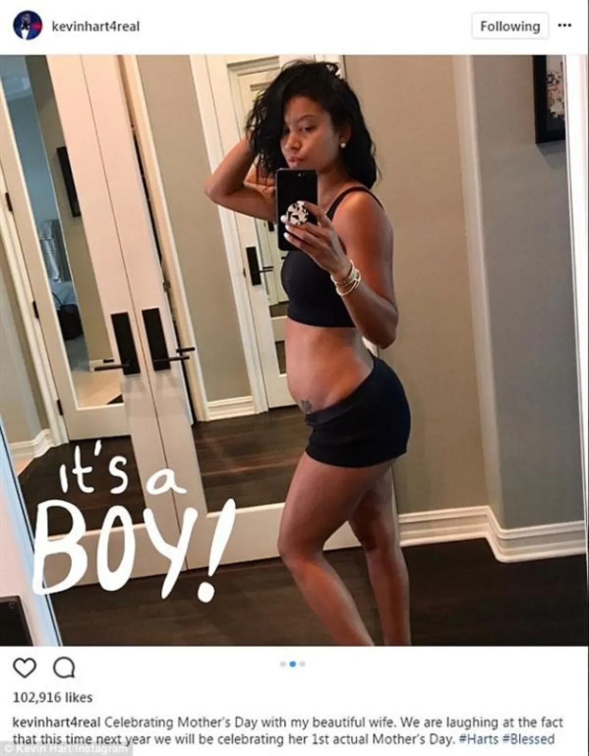 أعلن النجم الكوميدى العالمي كيفين هارت Kevin Hart في يوم الأم بالولايات المتحدة الأمريكية، أنه ينتظر مولوده الأول من زوجته الحسناء إينكو باريش.