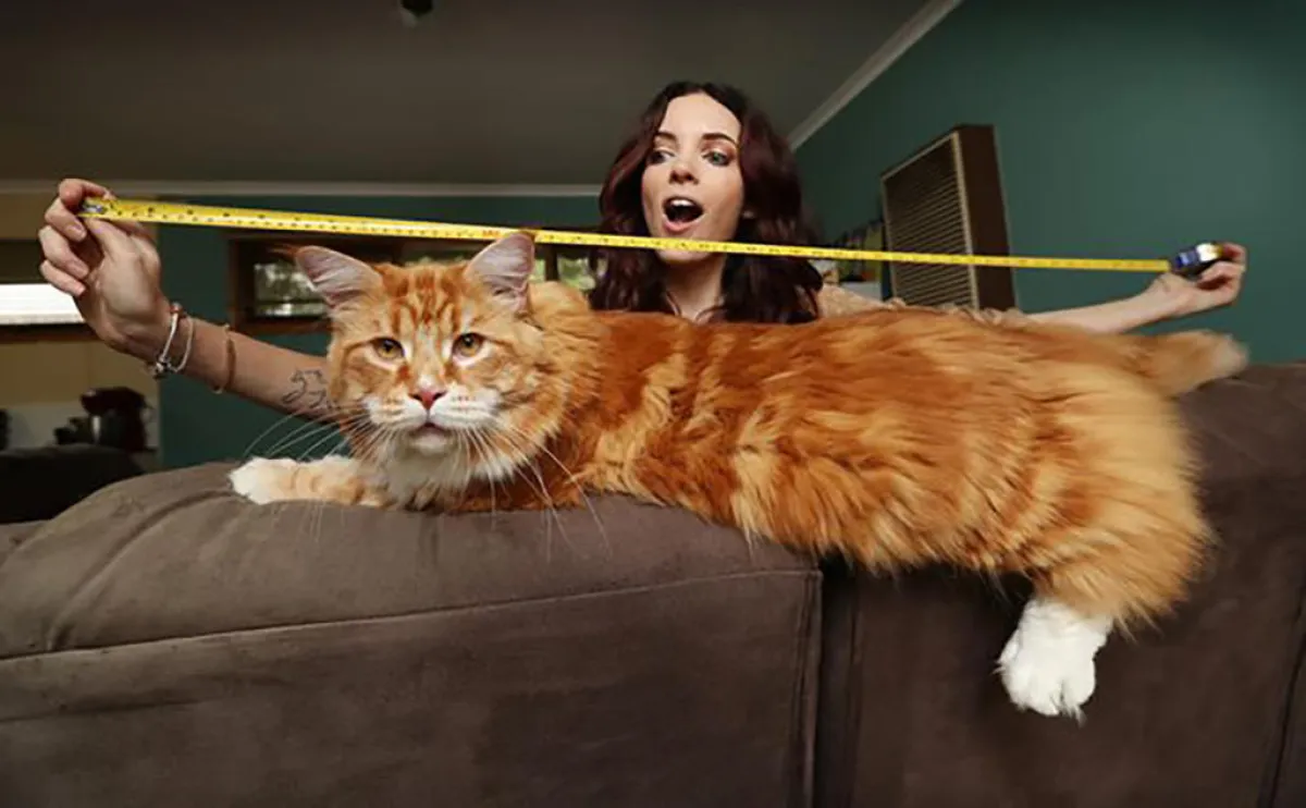 حيث يبلغ طوله 120 سنتيمتراً، وقد طلبت موسوعة "غينيس" للأرقام القياسية تحديد قياساته بدقة للتأكد من إنه القط الأطول في العالم.