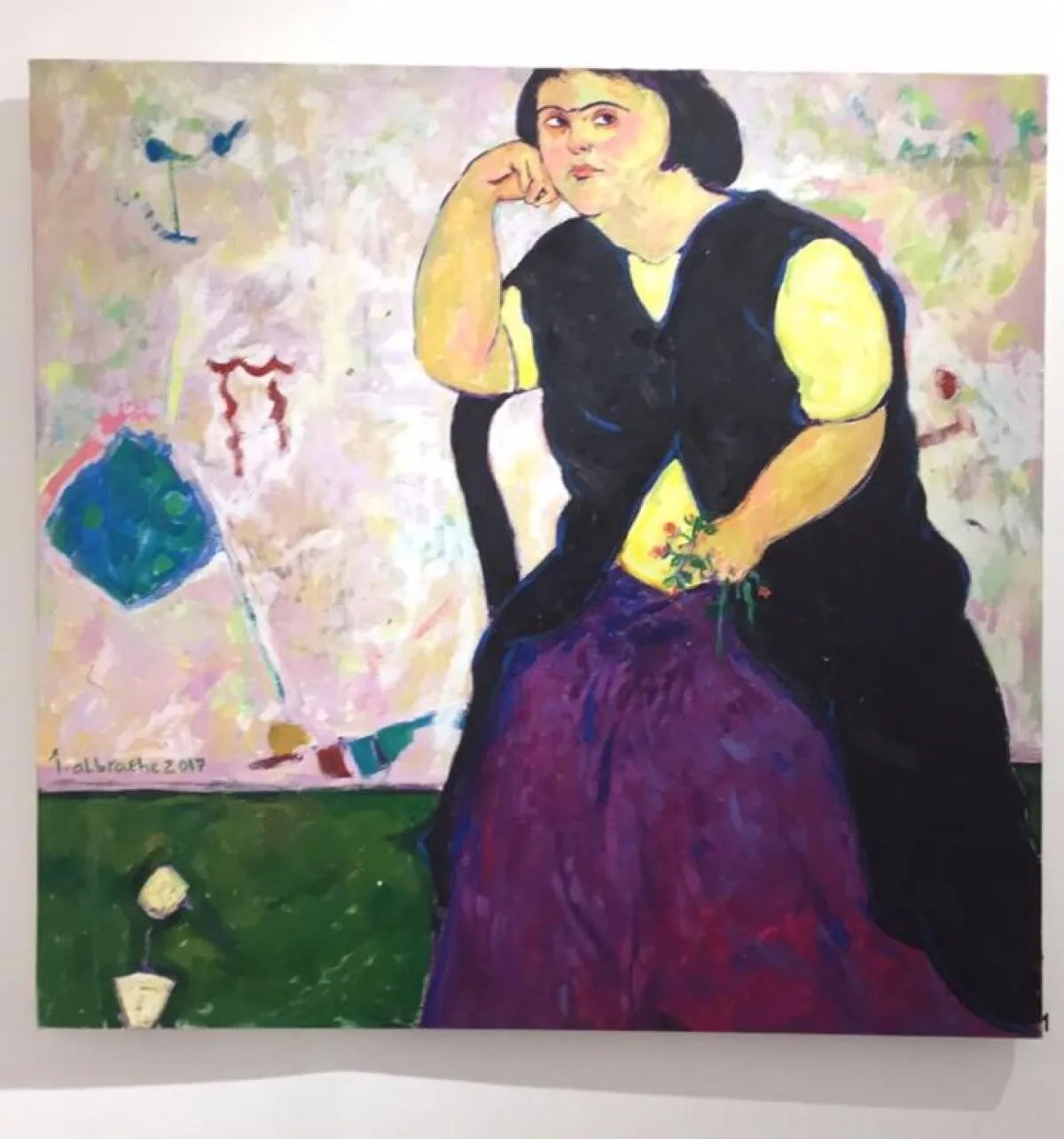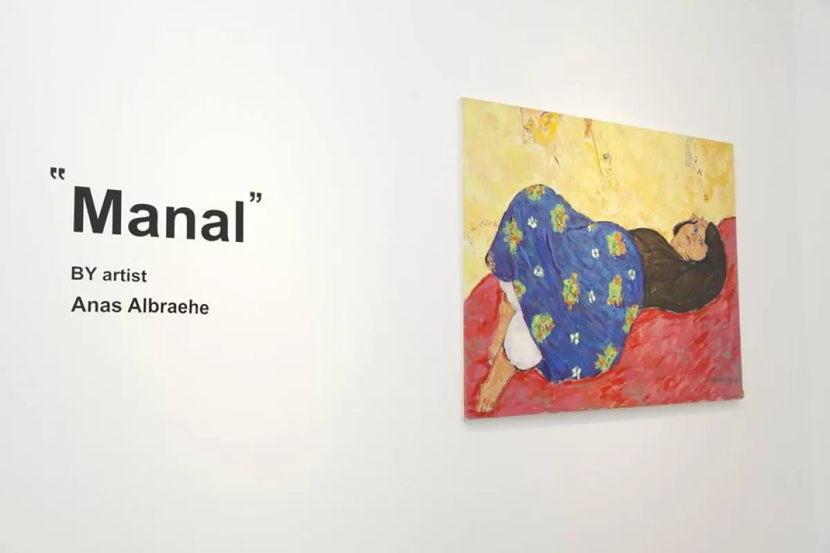 وتبدو في لوحات المعرض براعة ريشة الفنان البريحي في الجمع بين الوجود الفريد للفتاة "منال" ليعكس وجوده الخاص مبتكراً تمثيلاً ذاتياً للآخر.