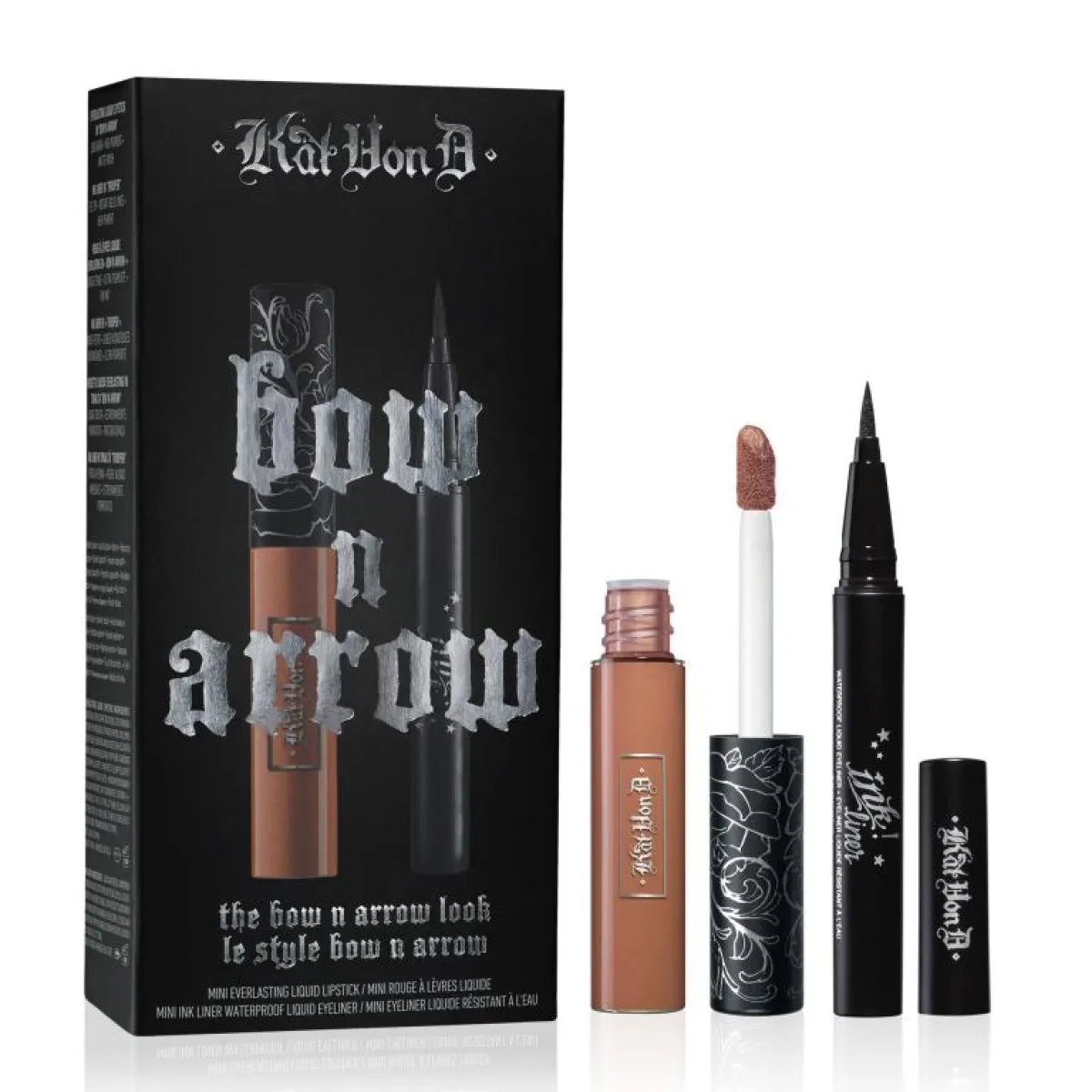 إنّها طقم مستحضرات تجميل مصغّر يضمّ مستحضرات العيون والشفاه المفضّلة لدى Kat Von D ويبرز من بينها قلم تحديد العيون الأسود الماتيّ الشهير وأحمر شفاه Everlasting Liquid Lipstick. طقم Bow N Arrow Set هو عدّتك بامتياز. تألّقي بإطلالات عيون وشفاه لا تُقاوم بدرجات ألوان النيود.