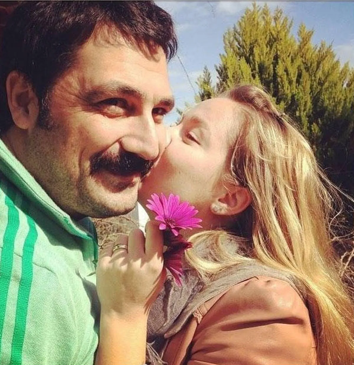 لقطة رومانسيّة تجمع بولنت آينال بزوجته، مصرّحًا أنّه محظوظ عاطفيًّا بها.