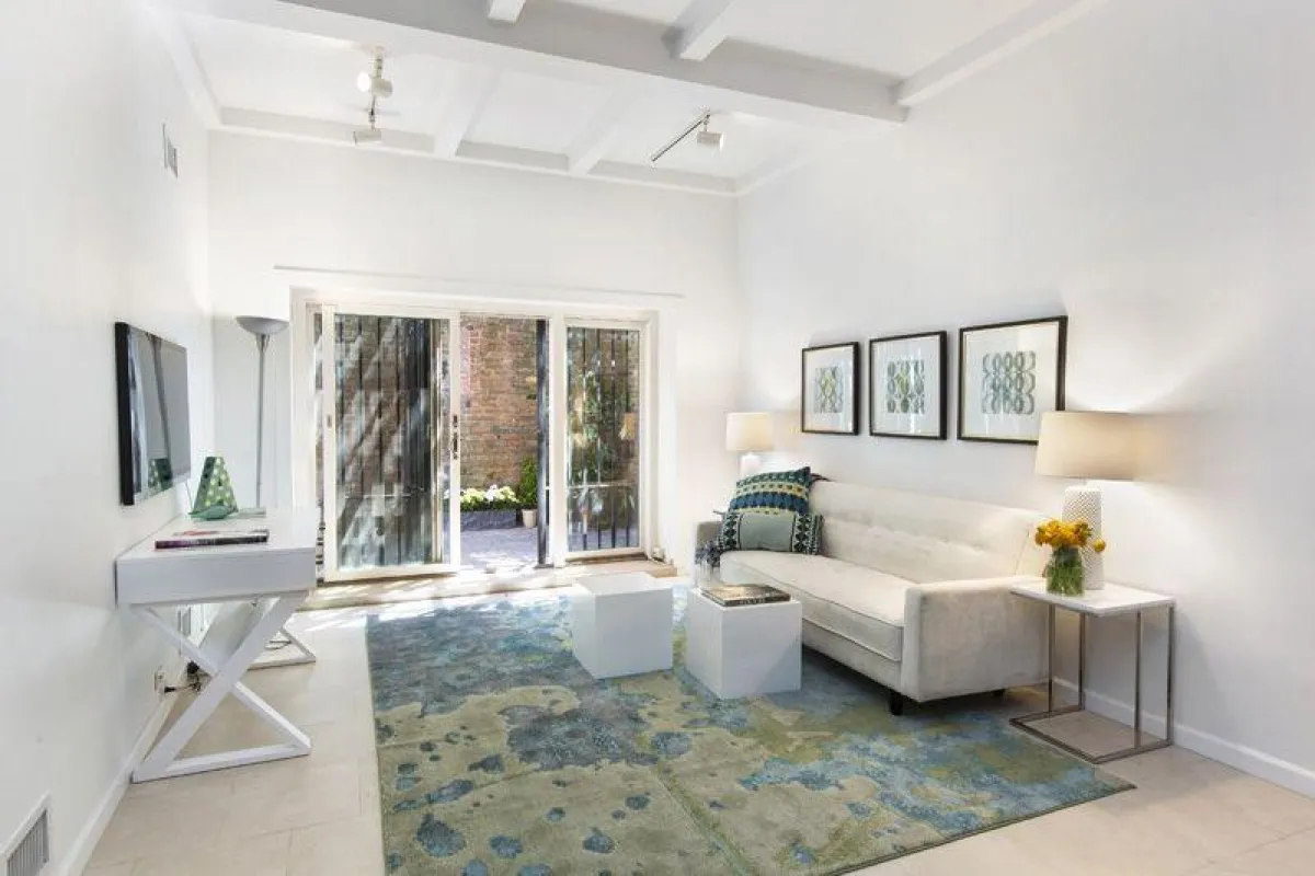 النظرة المطوّلة إلى صور المنزل، تبيّن أن اللون الأبيض يتألّق في الصالون الأوّل المؤثّث بجلسة مريحة مطلّة على قسم من الحديقة الخارجيّة. أمّا ركن الطعام فيضمّ طاولة خشب وستّ كراس مكسوّة بالقماش باللون البيج الداكن. وتبرز على الجدار الرئيس مرآة تتخذ شكل الشمس. ويحكم الطراز الأمريكي العصري ديكور المطبخ، حيث تُغلّف خامة الخشب الخزائن المطليّة باللون الأبيض، فيما يصمّم الخشب البنّي "الجزيرة".