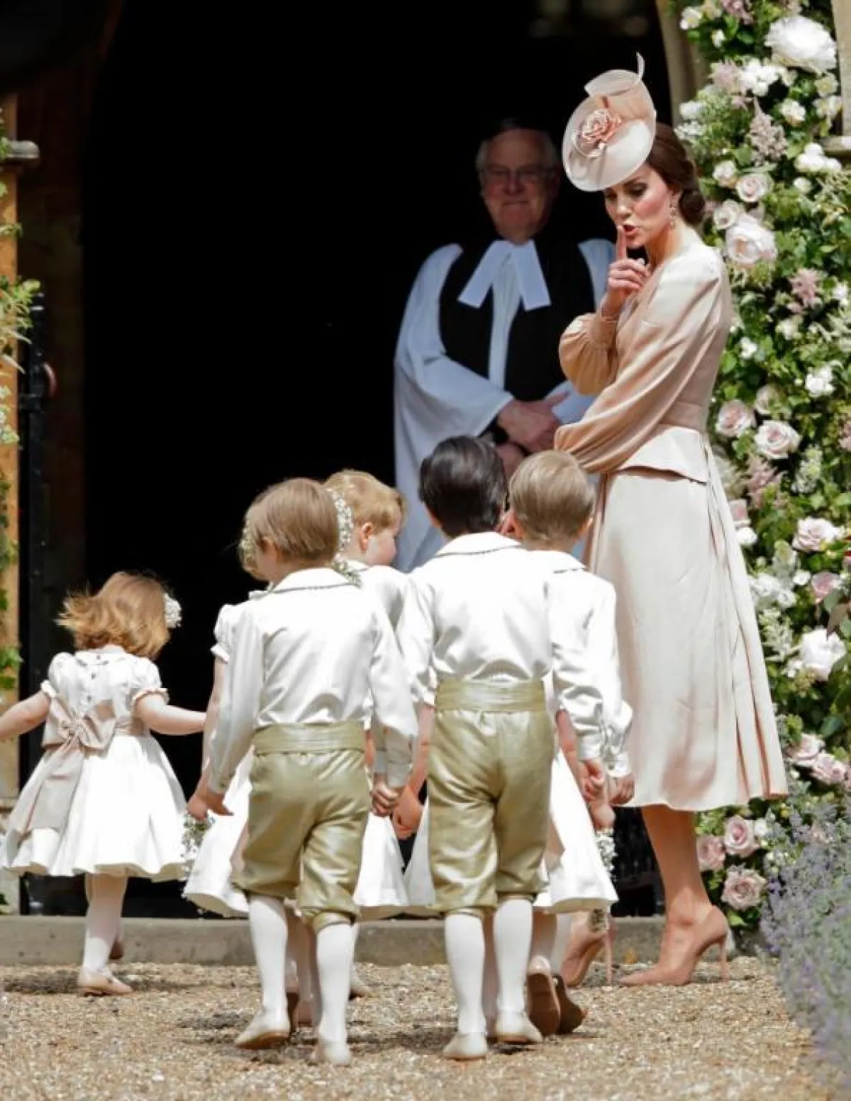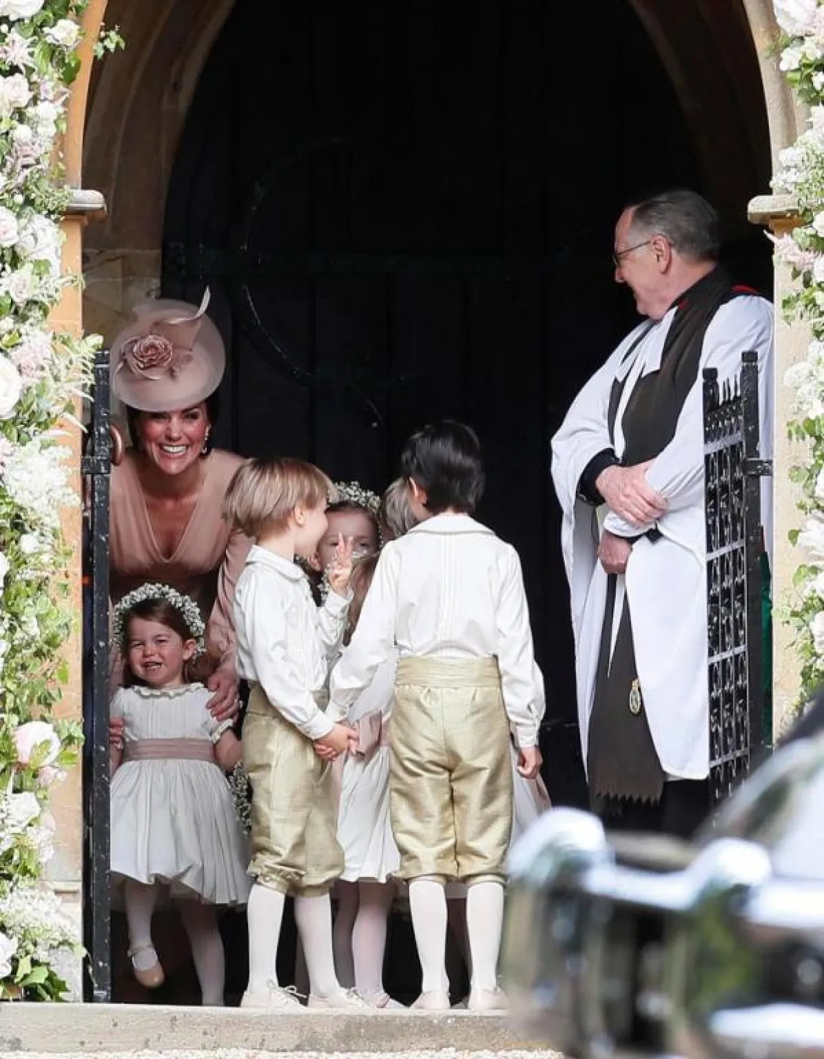 وقد حضرت الأميرة شارلوت والأمير جورج إلى الكنيسة مع والدتهما حيث سيحملان الورود وخاتم الزفاف لخالتهما.