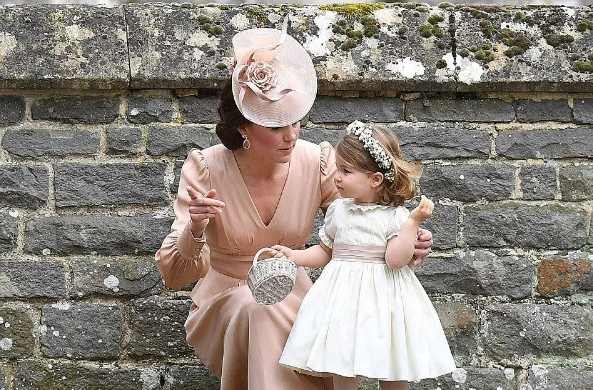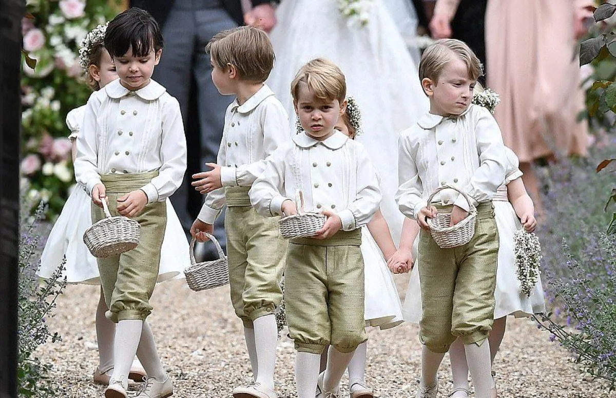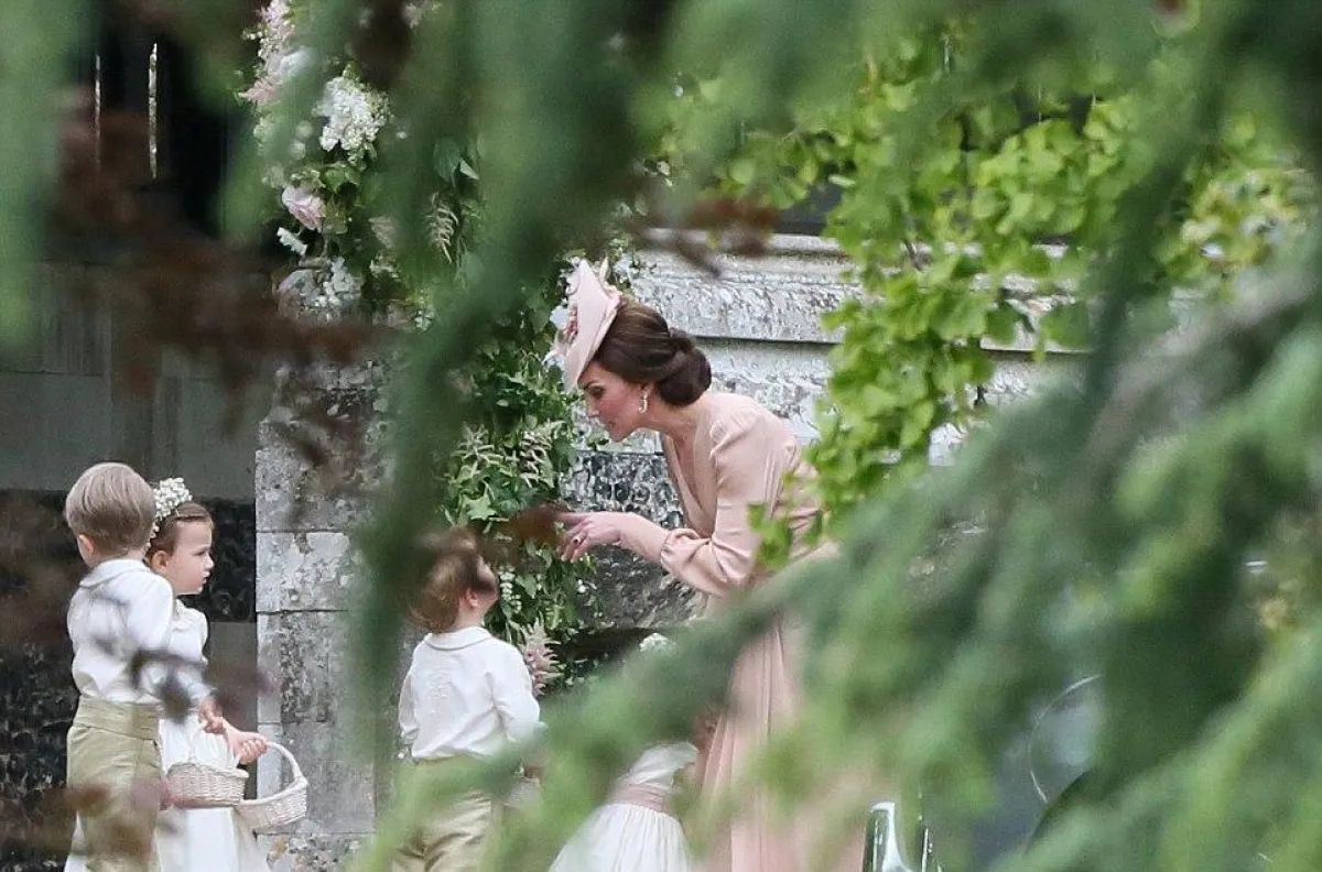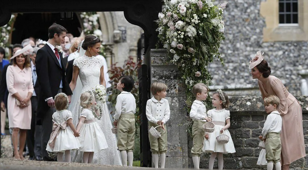 الأميران الصغيران سارا خلف بيبا خلال دخولها قاعة الكنيسة التي أقيمت فيها مراسم زواج العروسين.