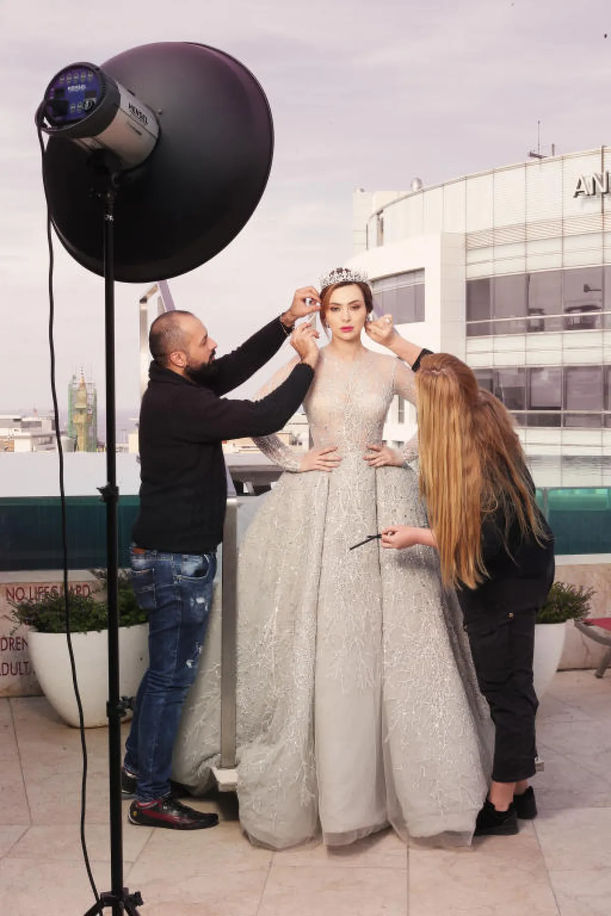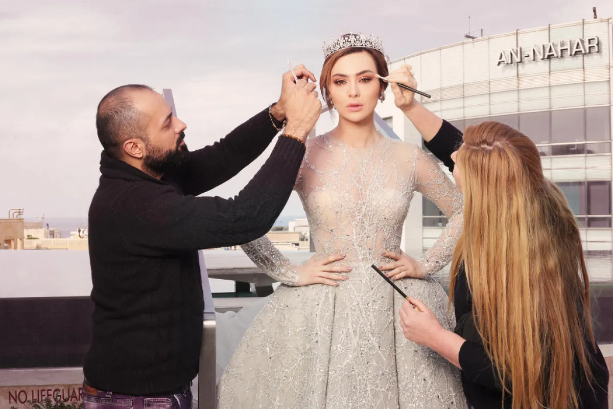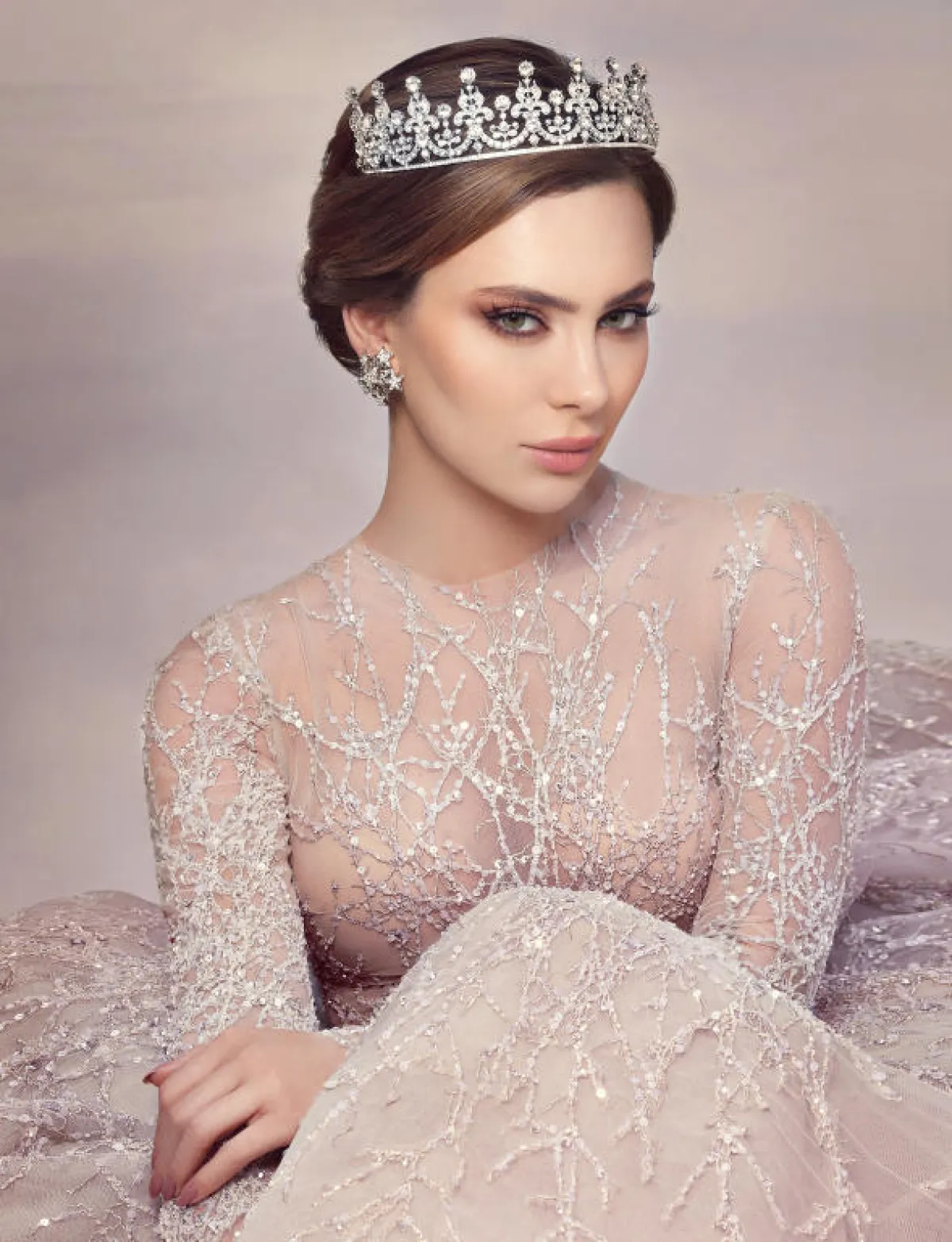الفستان من تصميم Ali Youness التاج على الرأي من تصميم Ziad Abbas