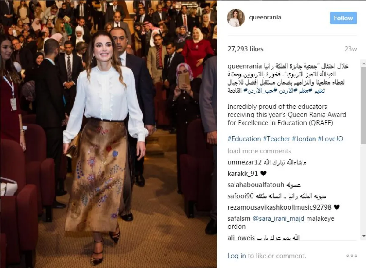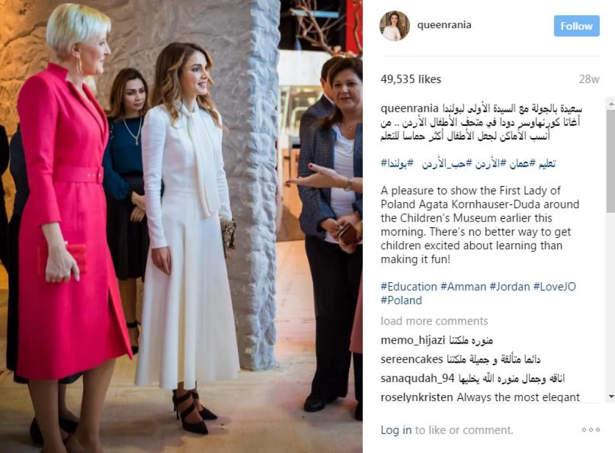تتميّز الملكة رانيا بأناقة عالية وذوق رفيع، تتفوق فيه على نفسها مع كلّ إطلالة، وهي تجمع في خياراتها عنصري الحشمة والأناقة، بشكل مميز .