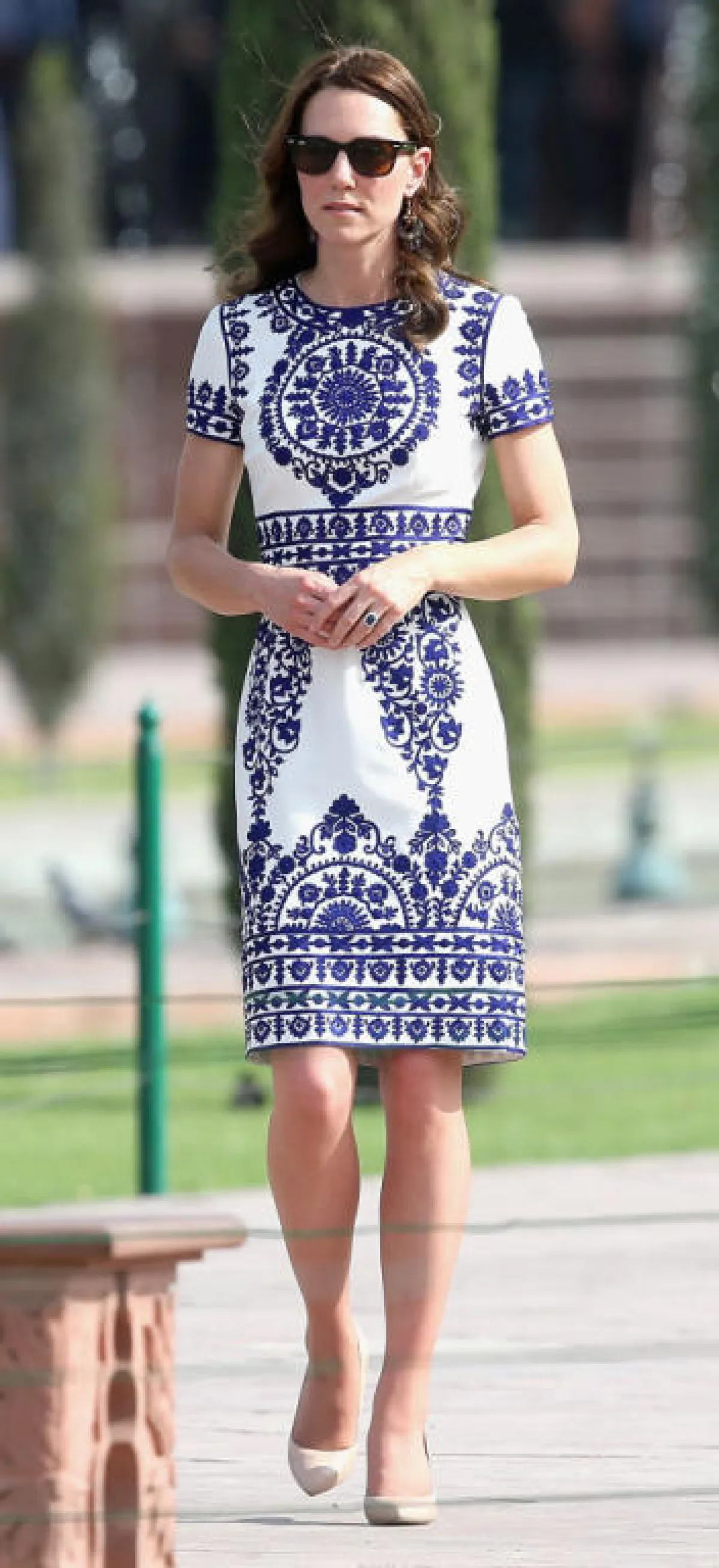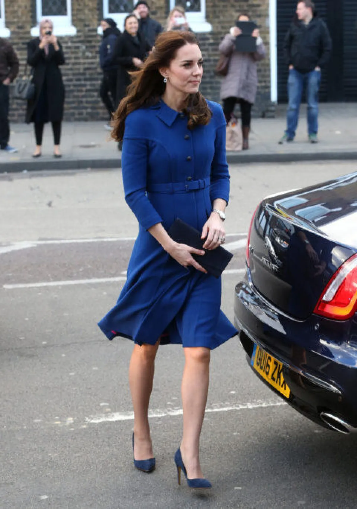 ومن خلال جولة قمنا بها على إطلالات كيت منذ فترة وإلى وقتنا الحالي، لاحظنا أنّها اعتمدت في الكثير من الأوقات، على اللون الكحلي كلون أساسي لإطلالاتها في مختلف المناسبات، سواء كانت مناسبات رسميّة أو غيرها، فرأيناها متألقة في إحدى الزيارات الرسميّة، بفستان باللون الكحلي، مصنوع في قمسه العلوي من قماش الدانتيل، نسقت معه حقيبة يد كلاتش باللون الذهبي. وفي إطلالة رسميّة أخرى اختارت كيت فستانًا باللون الكحلي بأكمام طويلة من قماش الشيفون، مزيّنًا بنقشات على شكل دوائر صغيرة باللون الأسود. أما في إطلالاتها اليوميّة، فهي لا تتخلى عن اللون الكحلي أيضًا، حيث ارتدت في إحدى إطلالاتها فستانًا باللون الأبيض بأكمام قصيرة، مزيّنًا بتطريز باللون الكحلي بطريقة كلاسيكيّة مميزة.