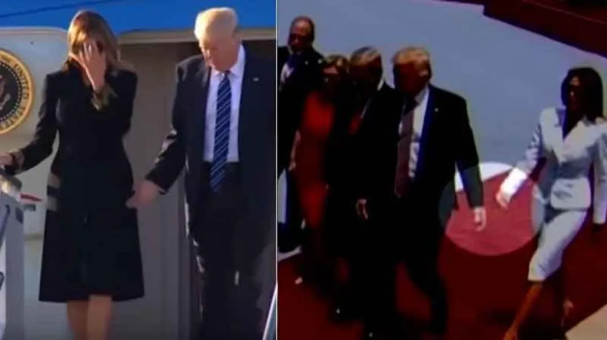 وكانت ميلانيا قد رفضت في المرّة الأولى قيام ترامب بالإمساك بيدها، بعدما مدّ يده نحوها محاولًا إمساك يدها، وهما على السجادة الحمراء بعيد وصولهما إلى فلسطين المحتلة، ولكنّها أبعدت يده بشكل أثار التساؤلات حول العلاقة بينهما.