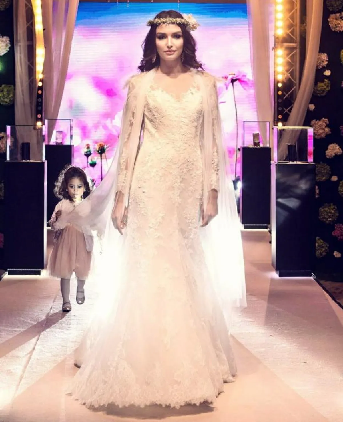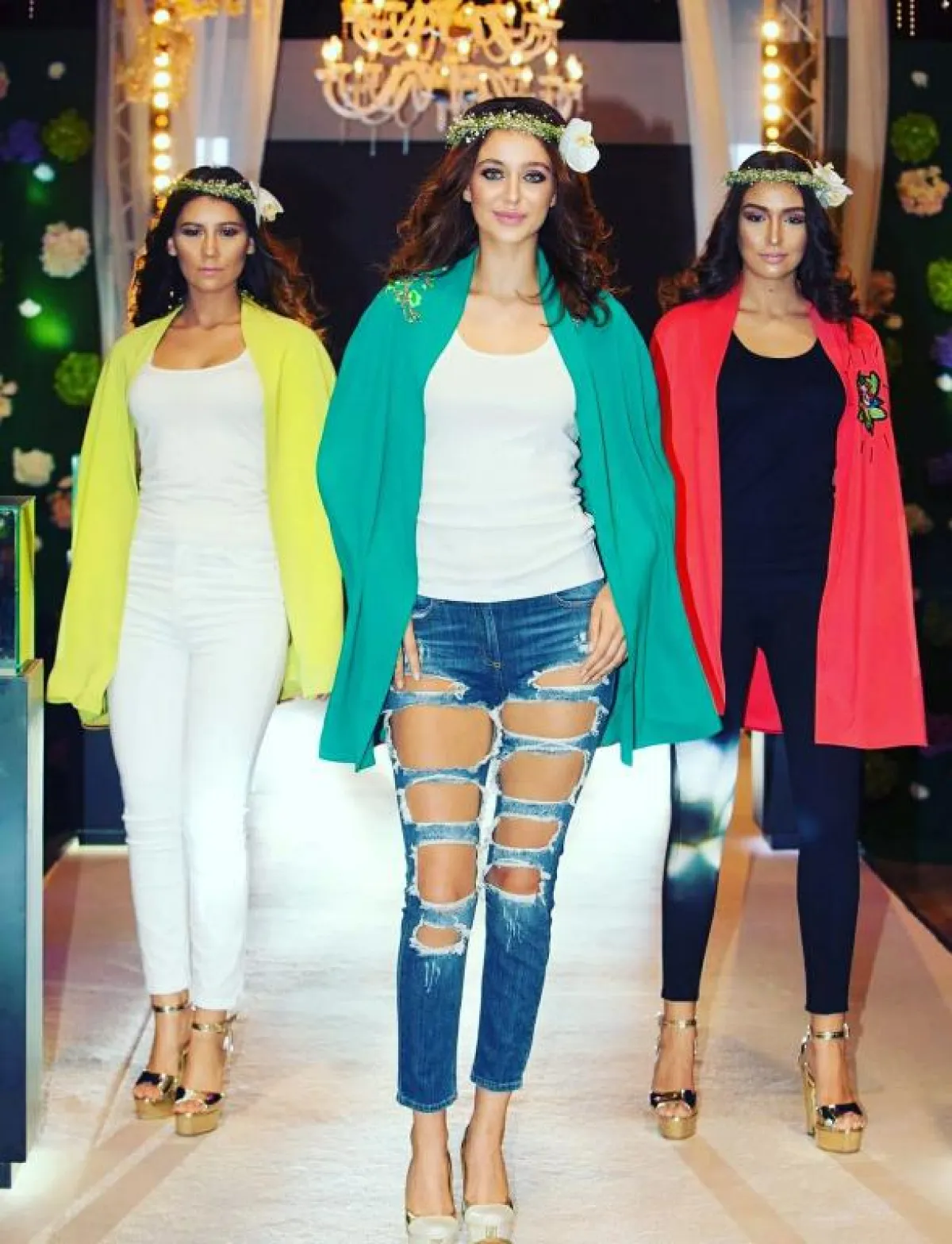 إطلالة العارضات تحيلنا على آلهة الرومان، إذ زينت رؤوسهن بتيجان من الورود على الطريقة الرومانية، وترك الشعر منسدلا، ورافقت هذه الإطلالة الأنيقة حقائب يد تحمل توقيع علامة بولغاري الإيطالية، وزينت إطلالات العارضات بإكسسوارات سيدني لوف.