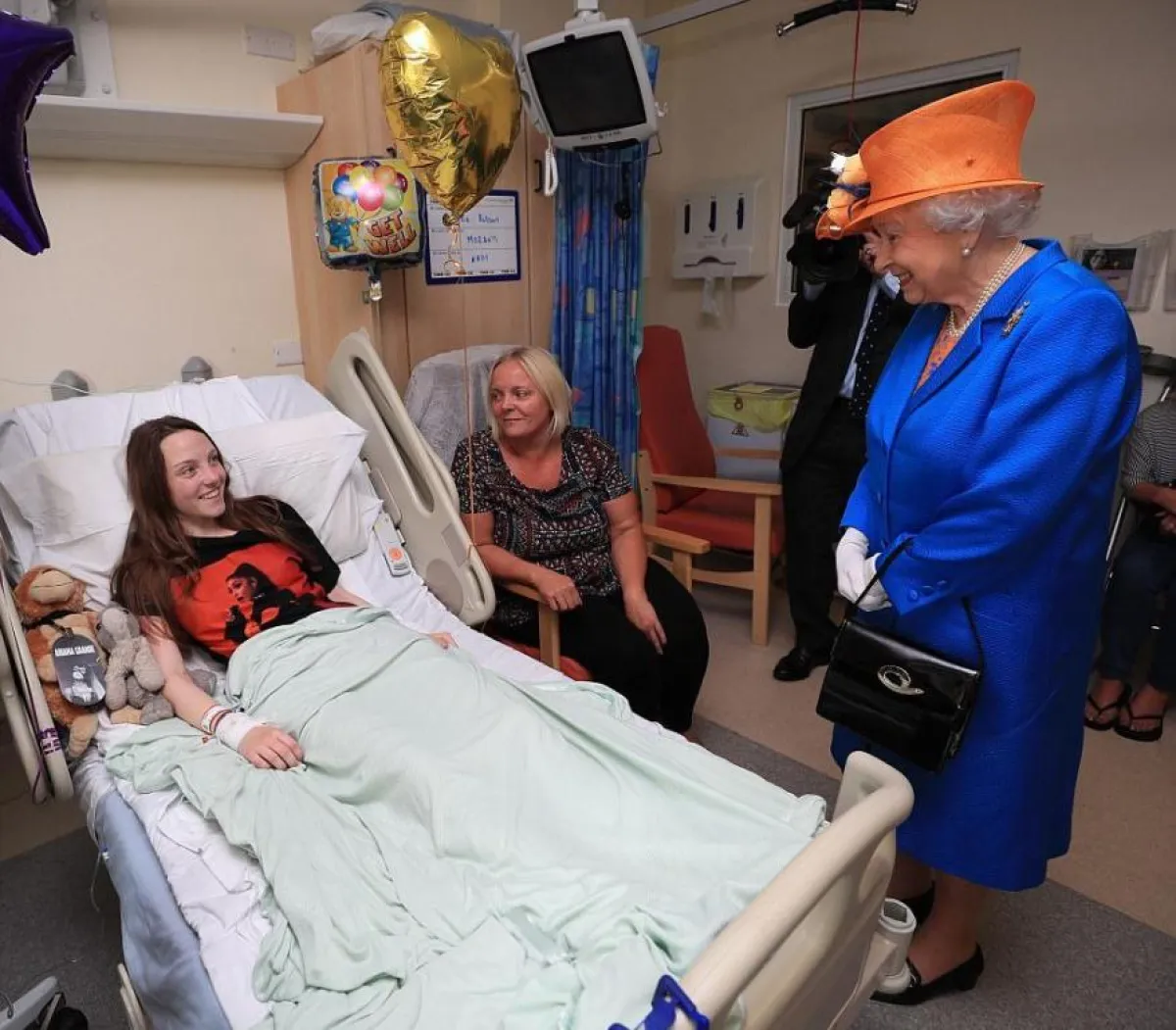 والتقت الملكة البالغة من العمر 91 عامًا، بعض المصابين للاطمئنان على صحّتهم بعد ما تعرّضوا له، كما التقت عددًا من العاملين بالمستشفى، وشكرتهم على جهودهم.
