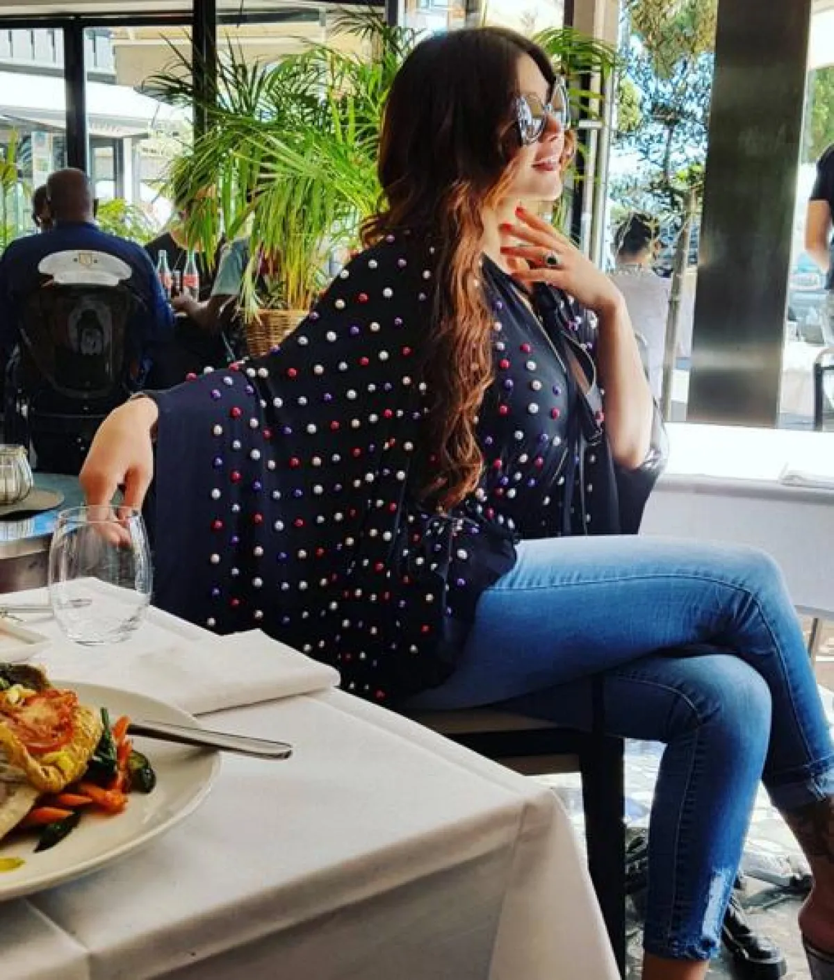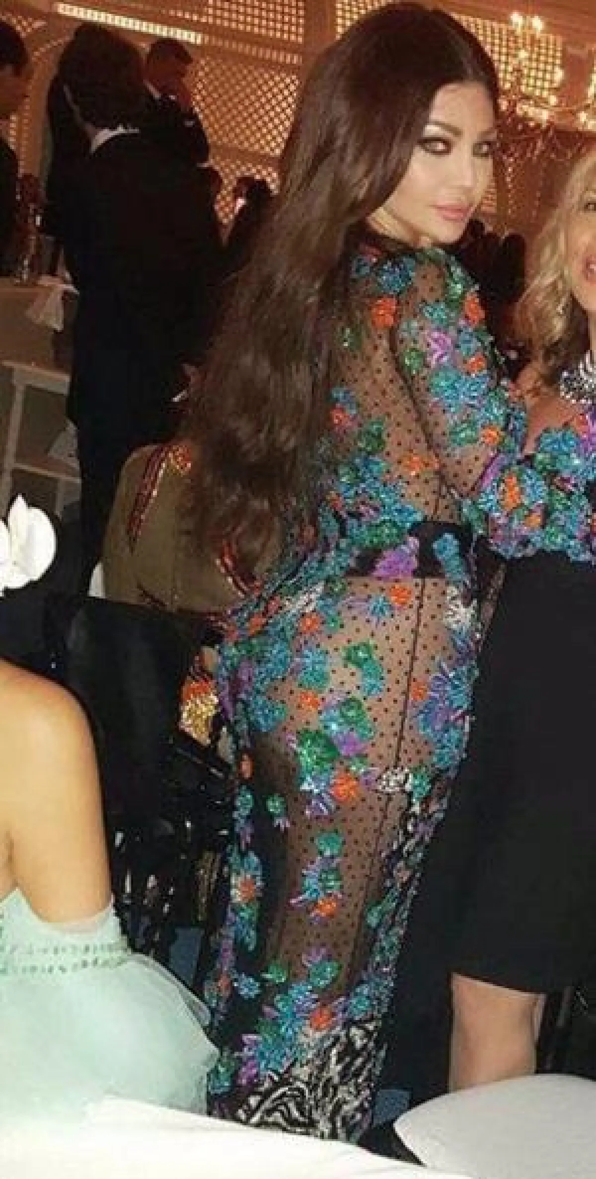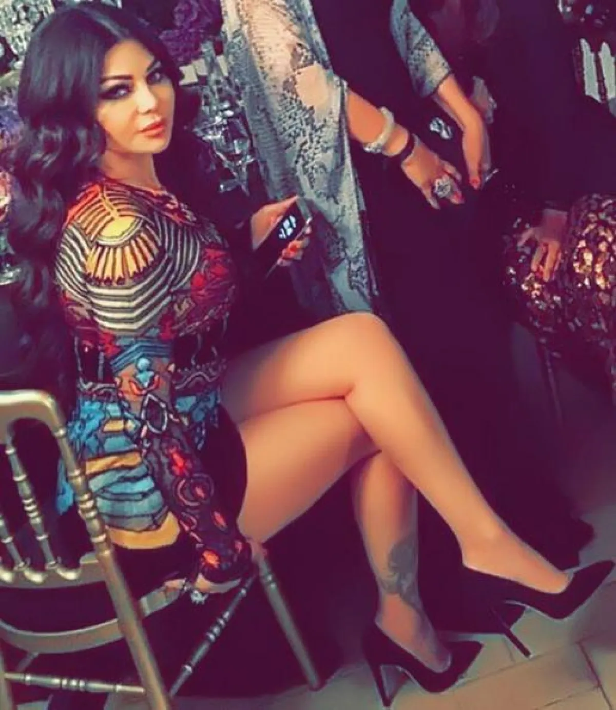 في مناسبة خاصة بدار "شوبارد" Chopard شاهدناها في تصميم "بلاي سوت" Playsuit قصير جداً من الدانتيل باللون الزهري، نسقته مع حذاء أسود كعب عال، وفي اطلالة صباحية أُخرى رصدت لها أثناء تجولها في شوارع المدينة اختارت هيفا شورت قصيراً من الجينز نسقته مع توب قطنية وشنطة يد من "غوتشي" Gucci، وفي حفل خاص أيضاً شاهدناها في فستان ملون قصير أيضاً نسقته مع حذاء كعب عال وشنطة يد بتصميم لافت، أما مساء أمس في حفل دار المجوهرات "دي غريزوغوتو" de GRISOGONO فقد اختارت هيفاء وهبي فستان من "روبيرتو كافالي" Roberto Cavalli من قماش الشيفون المطرز بالخرز الملون، واختارت معه عقداً ماسياً ناعماً.