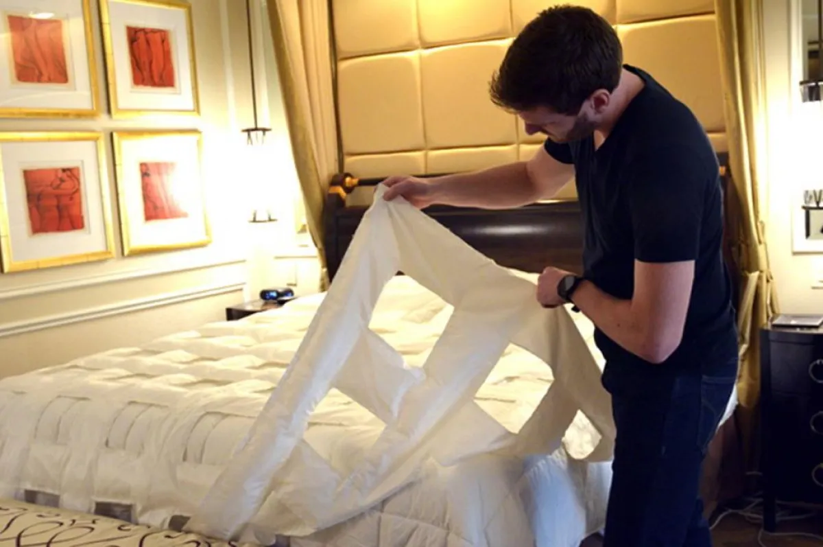 ويمكن أيضًا أن يتم تغييره تلقائيًا لترتيب نفسه في وقت محدد كل يوم، وذلك باستخدام أنابيب نفخ لإعداده للمساء، وبهذا يمكن للجهاز الجديد أن يضع حدًا لمناقشات الأزواج حول مدى كون غرفة النوم حارة أو باردة، متيحة لكلا الشريكين الاستمتاع بالليل والنوم الهانئ بدرجة الحرارة المثالية بفضل منفاخ الهواء الموجود تحت السرير.