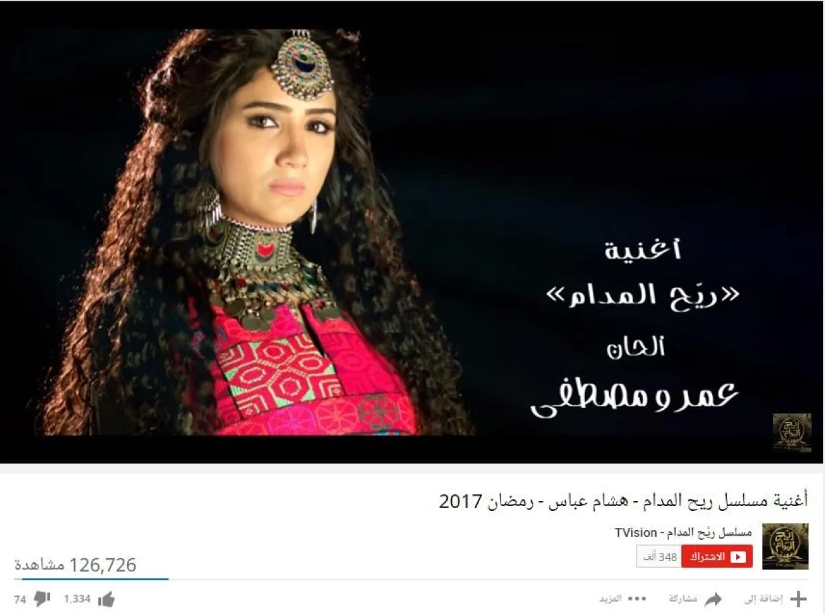 11- أغنية مسلسل "ريح المدام" للمطرب هشام عباس، من كلمات أيمن بهجت قمر، وألحان عمرو مصطفى، حققت 126,726 مشاهدة.