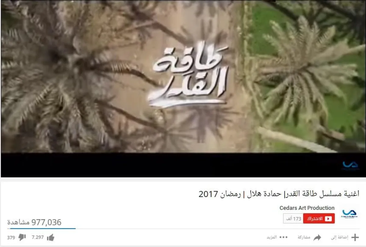5- المطرب حمادة هلال احتل المرتبة الخامسة بأغنية مسلسله " طاقة القدر"، وحققت 977,036 مشاهدة.