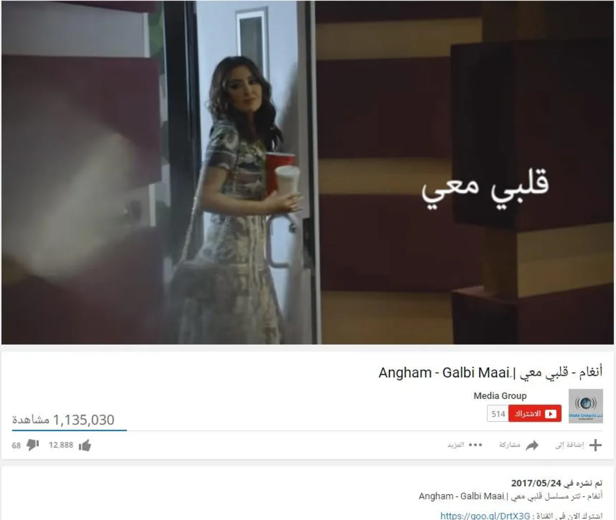 3- المطربة المصريّة "أنغام"، تشارك هذا العام تيتر المسلسل الخليجي "قلبي معي" للنجمة ميساء مغربي، والأغنية من كلمات تركي المشيقح، وألحان الأنين، وتوزيع خالد عز، وحققت 1,135,030 مشاهدة.