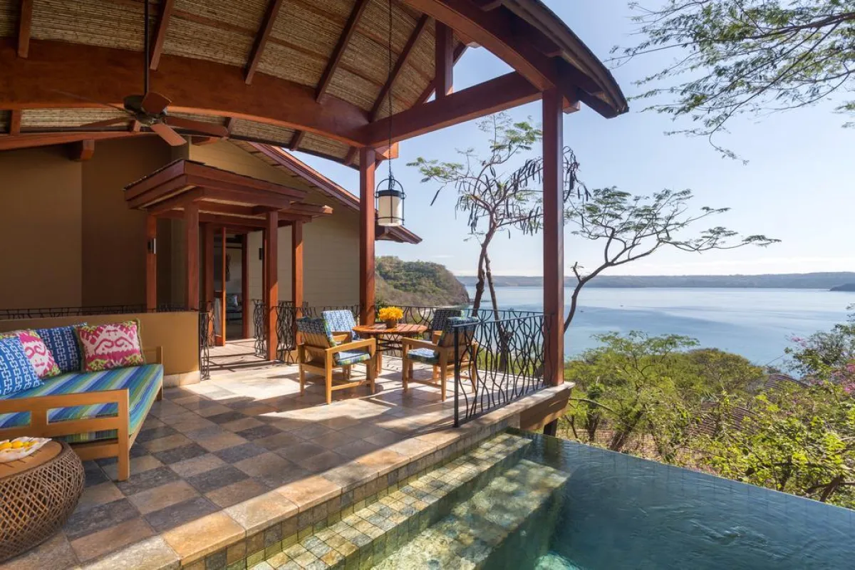 على شواطئ شبه جزيرة "باباغايو" الذهبيّة، يرتفع هذا المنتجع الفخم حوالي 100 متر فوق سطح البحر. وفي حين أنه لم يُصمّم على هيئة بيوت الشجر بالفعل، إلّا أن أجنحته الجاذبة تتغلغل بين الغابات التي تغطّيها كالمظلّة في منظرٍ يخطف الأنفاس. وفي "فور سيزونز" بـ"كوستاريكا"، يمكن للنزلاء الاسترخاء في حمّامات السباحة العميقة الموجودة في أجنحتهم، مع التلذّذ بتناول "الكوكتيلات" الطازجة تحت أشعة الشمس الساطعة، أو المشاركة في بطولات الـ"غولف". كما يمكن أن يستمتع الأطفال بمغامرة المشاركة في مُخيّم صديق للبيئة.