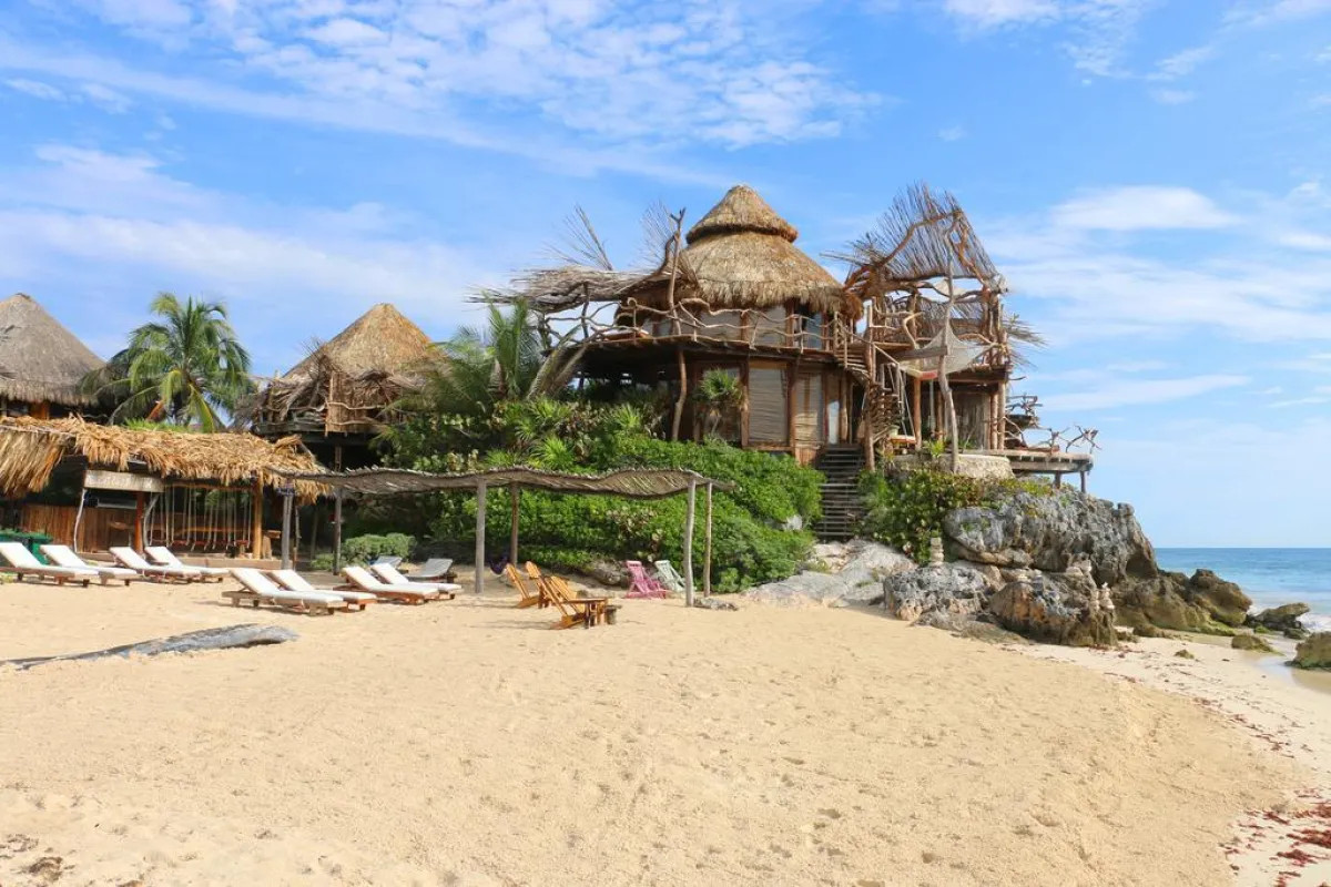 يستقطب منتجع "أزوليك" عددًا من المشاهير، نظرًا إلى احتوائه مجموعة من الفيللات متقنة التصميم. فهي مصنوعة من الخشب، وتطلّ مباشرة على البحر. وتتبع أحواض استحمام "موزاييك" خارجيّة لها، بالإضافة إلى "تِرّاس" مع أرجوحة وسرير مُعَلَّق على الطراز جزيرة "بالي". وهناك، يمكن للنزلاء الاختيار من لائحة الطعام المؤلّفة من 12 طبقًا والاستمتاع بوسائل ترفيهية أثناء مشاهدتهم عروضًا فنيّة، في مطعم "كين توه"، المبني فوق أدغال المايا بارتفاع 12 مترًا.