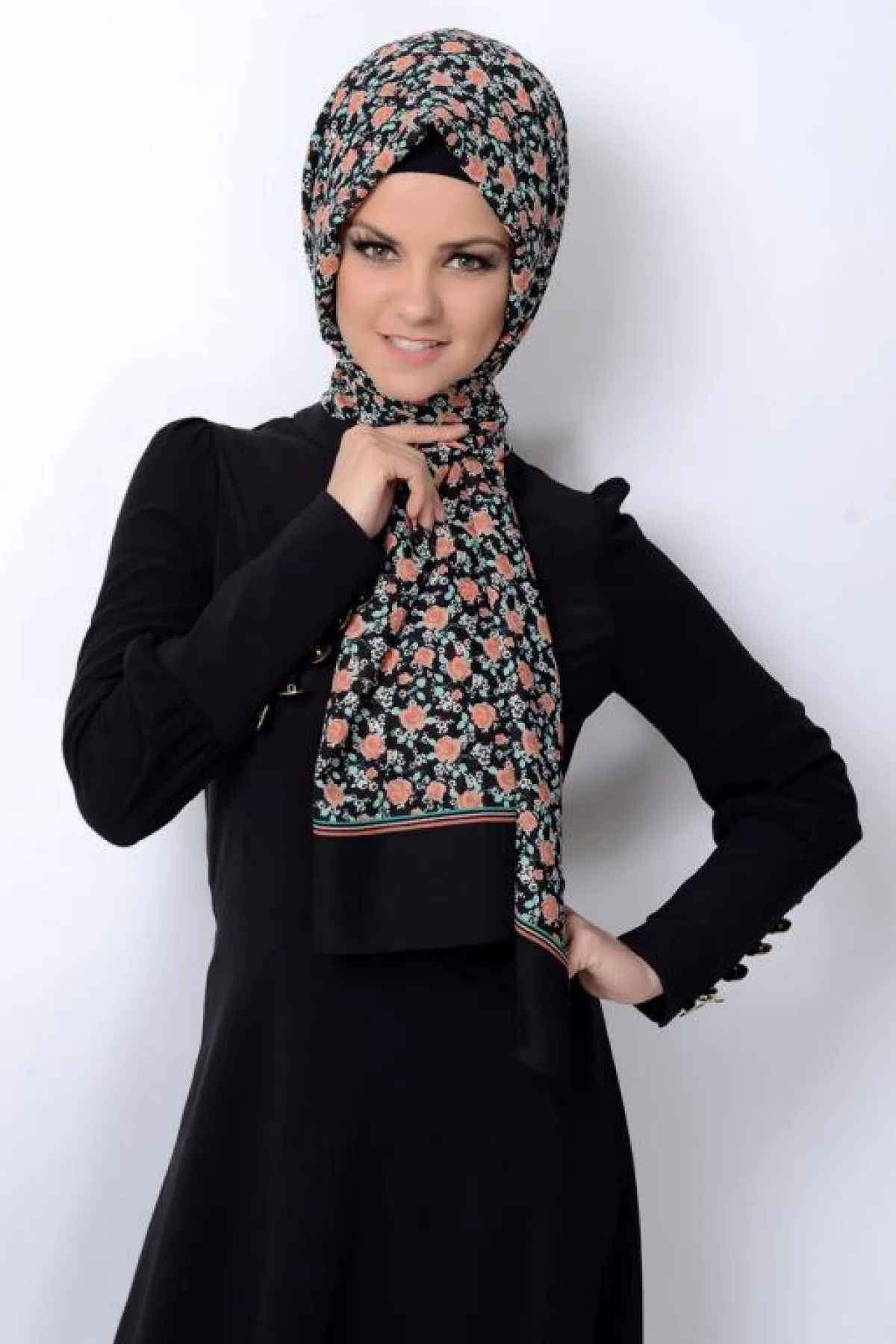 - ليكن لون ملابسك هو الأقلّ وجودًا في نقشة الشيلة أو الحجاب.