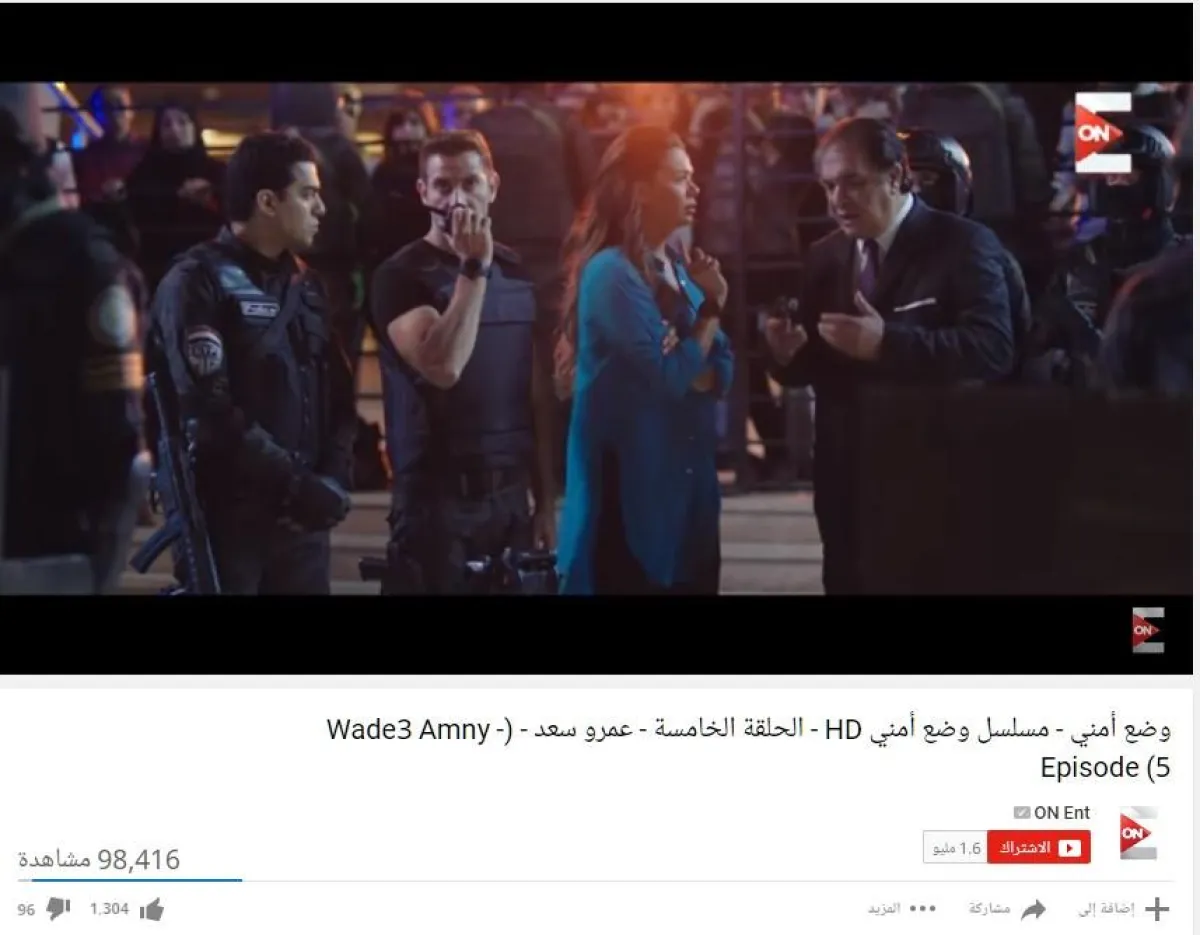 مسلسل "وضع أمني"، بطولة عمرو سعد، حققت الحلقة الخامسة 98,416 مشاهدة