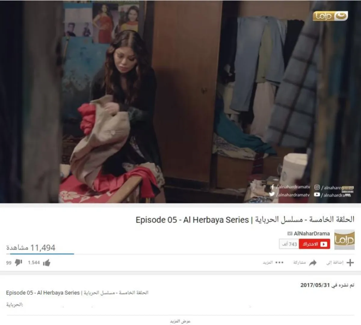 مسلسل "الحرباية"، بطولة هيفاء وهبي، ودينا، ومنذر رياحنة، حققت الحلقة الخامسة 11,494 مشاهدة