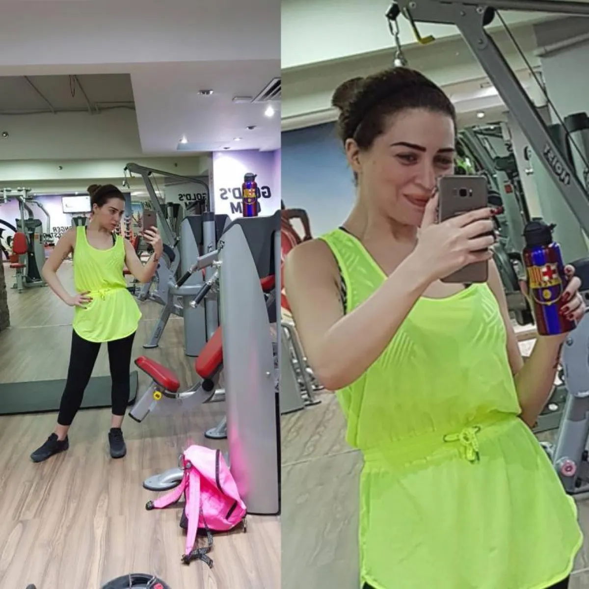 مي كعادتها مع الصور الخاصة، منعت تعليقات جمهورها، وبدت الصورة للوهلة الأولى، وكأنّها من جلسة التدريب الأولى نفسها، بخاصة وأنّها ارتدت الزيّ نفسه، ولكنّ الفارق بدا واضحًا في تسريحة الشعر، وارتداء حذاء رياضيّ باللون الأبيض، بدلًا من الحذاء الأسود في الجلسة الأولى، كما بدا واضحًا وجود فارق في عضلات الذراعين، وامتلاء واضح في الوجه.