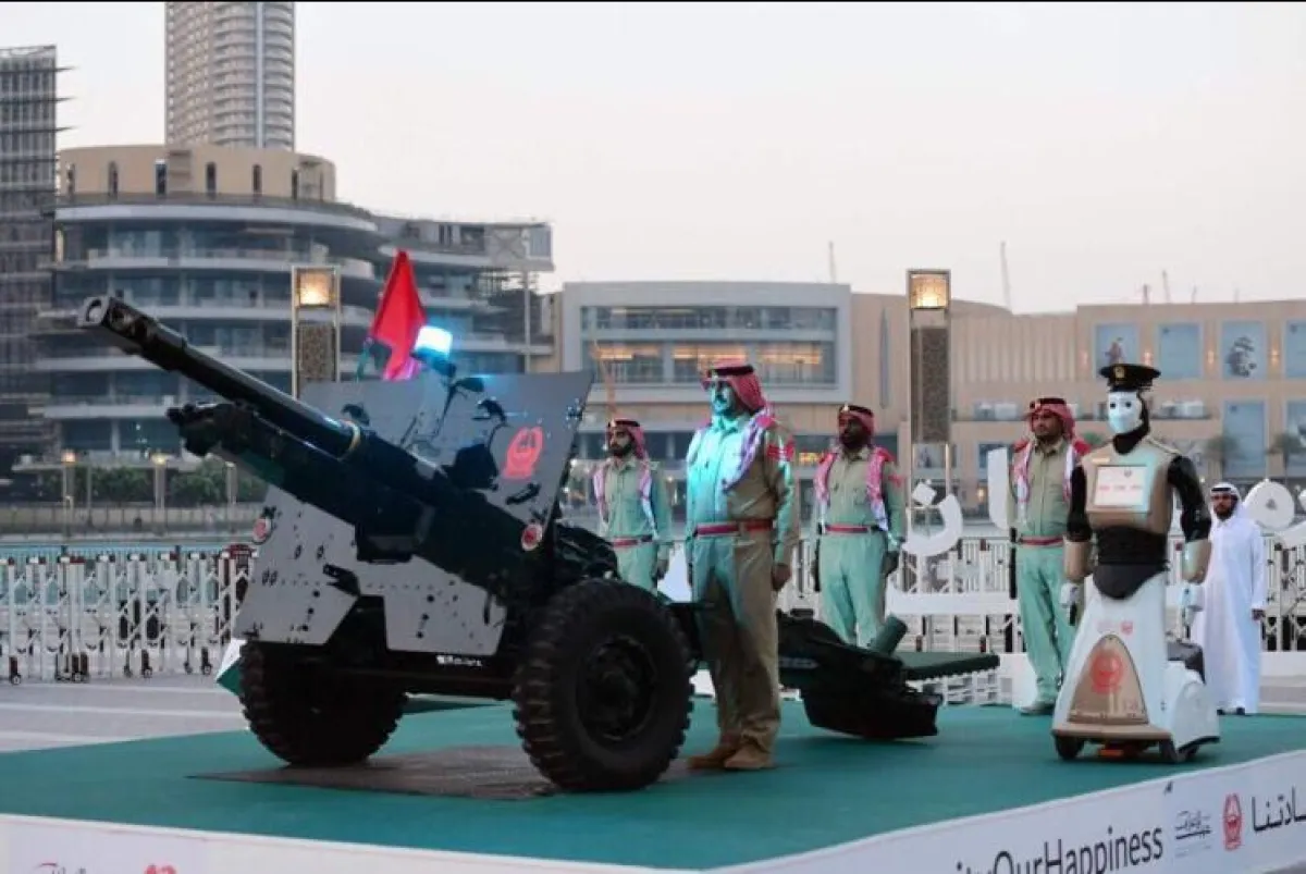 رجل الشرطة الآلي في دبي يشارك بإطلاق مدفع الإفطار