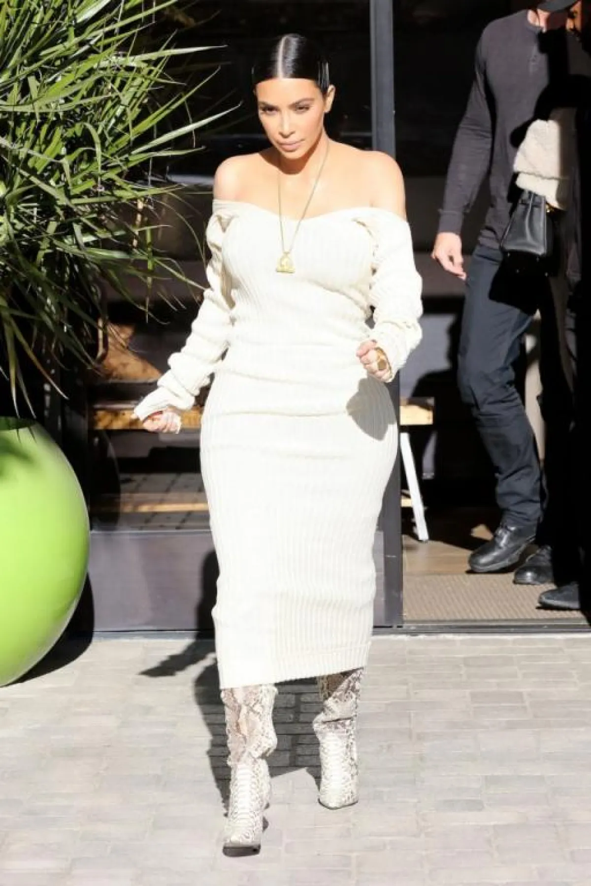 كثيرة هي المرات التي شاهدنا فيها "كريس جينير" Kris Jenner في اطلالة مشابهة أو مطابقة لاطلالات ابنتها "كيم كارداشيان" Kim Kardashian والتي على ما يبدو تعتبرها مصدر وحي بالنسبة لها ومرجعاً في الموضة، وهذا الأمر لا عيب فيه، غير أنها مؤخراً ولمشوار صباحي لها في مدينة لوس أنجلوس استنسخت اطلالة لـ"كيم" Kim قد شاهدناها فيها منذ عدة شهور في فستان ذي أكتاف مكشوفة باللون البيج، حتى أنها اختارت نفس العقد الذهبي الذي شاهدنا "كيم" Kim لأكثر من مرة تتزين به. وبالرغم من الحر في مدينة لوس أنجلوس هذه الأيام، اختارت مع الفستان جزمة عالية كما فعلت ابنتها سابقاً لكنها اختارته باللون الأسود بينما كانت "كيم" قد اختارتها بنقشة جلد الأفعى.