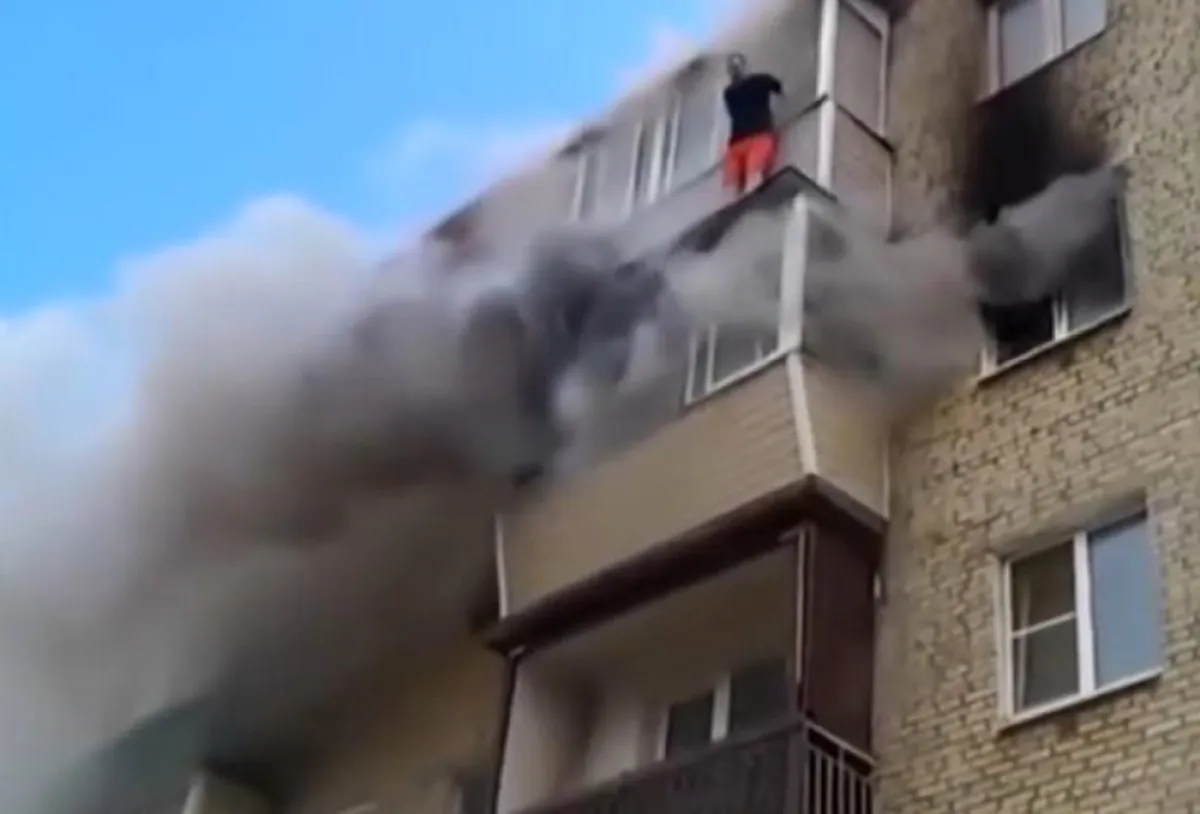 أثبت أبٌّ روسيٌّ شجاعته، عندما قام بإلقاء طفليه من النَّافذة لإنقاذ حياتهما، رغم أنَّهم يقيمون في الطَّابق الخامس في مدينة "سترونينو" القريبة من موسكو، وذلك بعد أن ضمن وجود 20 شخصاً في الأسفل يحملون بساطاً مشمعاً تحت النافذة.
