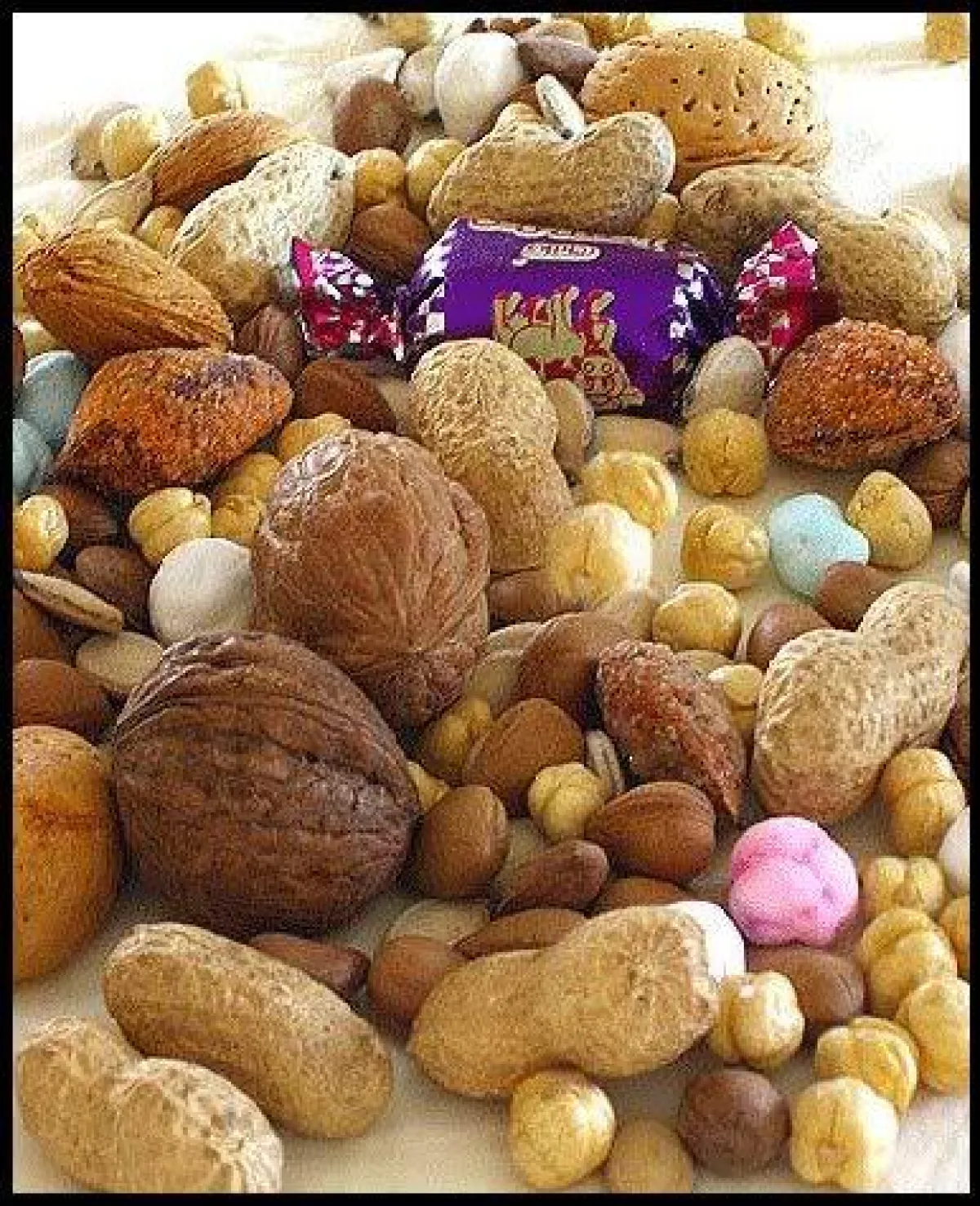 - يوضع بداخل الكيس خليط من المكسَّرات النخي، والنقل، والسبال، والفول السوداني والتين المجفف، إلى جانب بعض الحلويات.