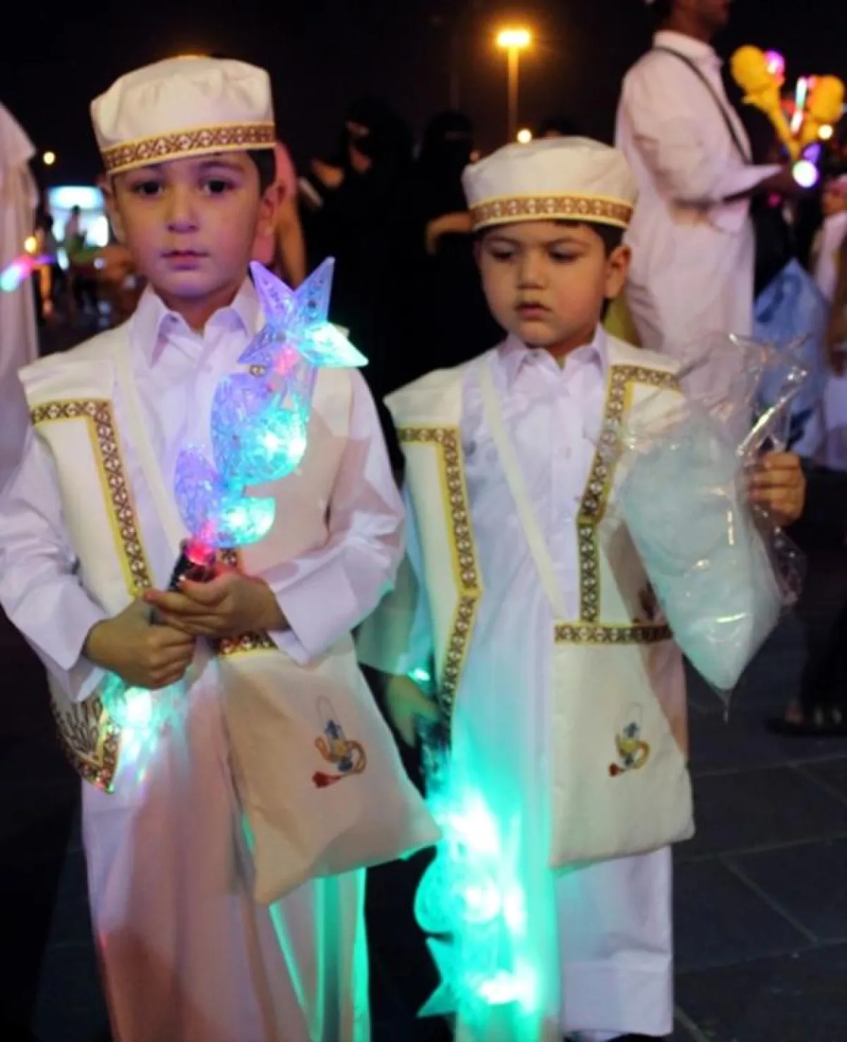 - وما أن يتناول الأطفال الإفطار حتى يسارعوا للتجمع والسير في شكل مجموعات يردِّدون أهازيج القرقيعان.