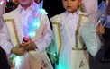 - الأولاد يرتدون الثوب الأبيض المطرز بخيوط ذهبيَّة مع سديري أسود أو من دونه ويحملون معهم أكياساً مصنوعة من القماش.