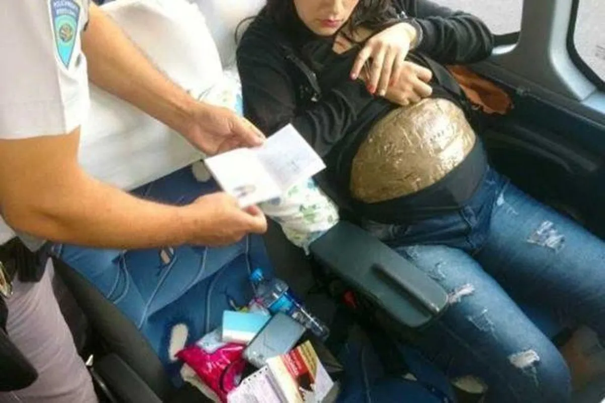 ابتكرت فتاة ذكية حيلة لتهريب كمية من المخدرات تزن 3 كيلو جرامات وذلك بوضعها على بطنها لتبدو كما لو كانت حامل .