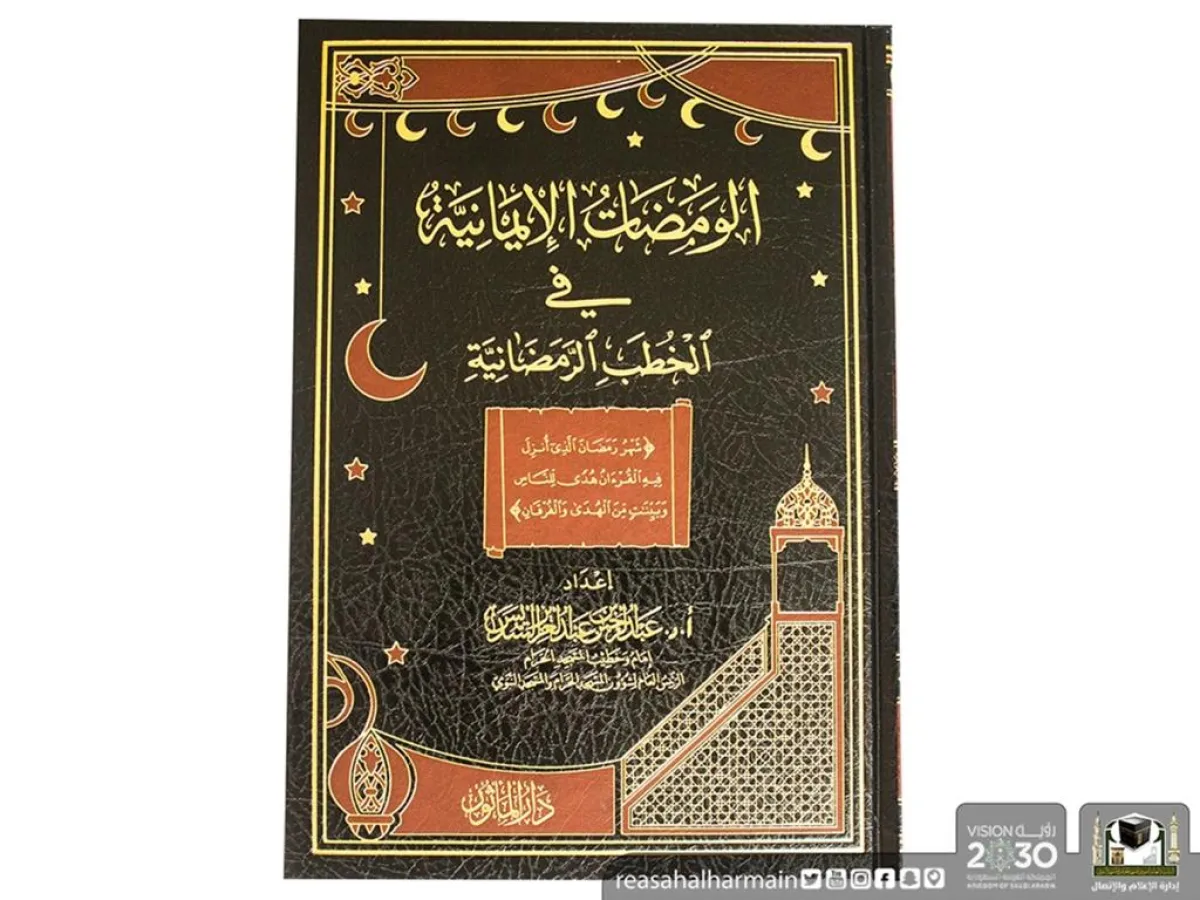 أصدر معالي الرئيس العام لشؤون المسجد الحرام والمسجد النبوي الشيخ الدكتور عبدالرحمن بن عبدالعزيز السديس إصداراً رمضانياً جديداً، وهو كتاب بعنوان (الومضات الإيمانية في الخطب الرمضانية).