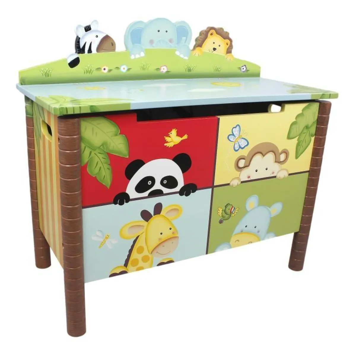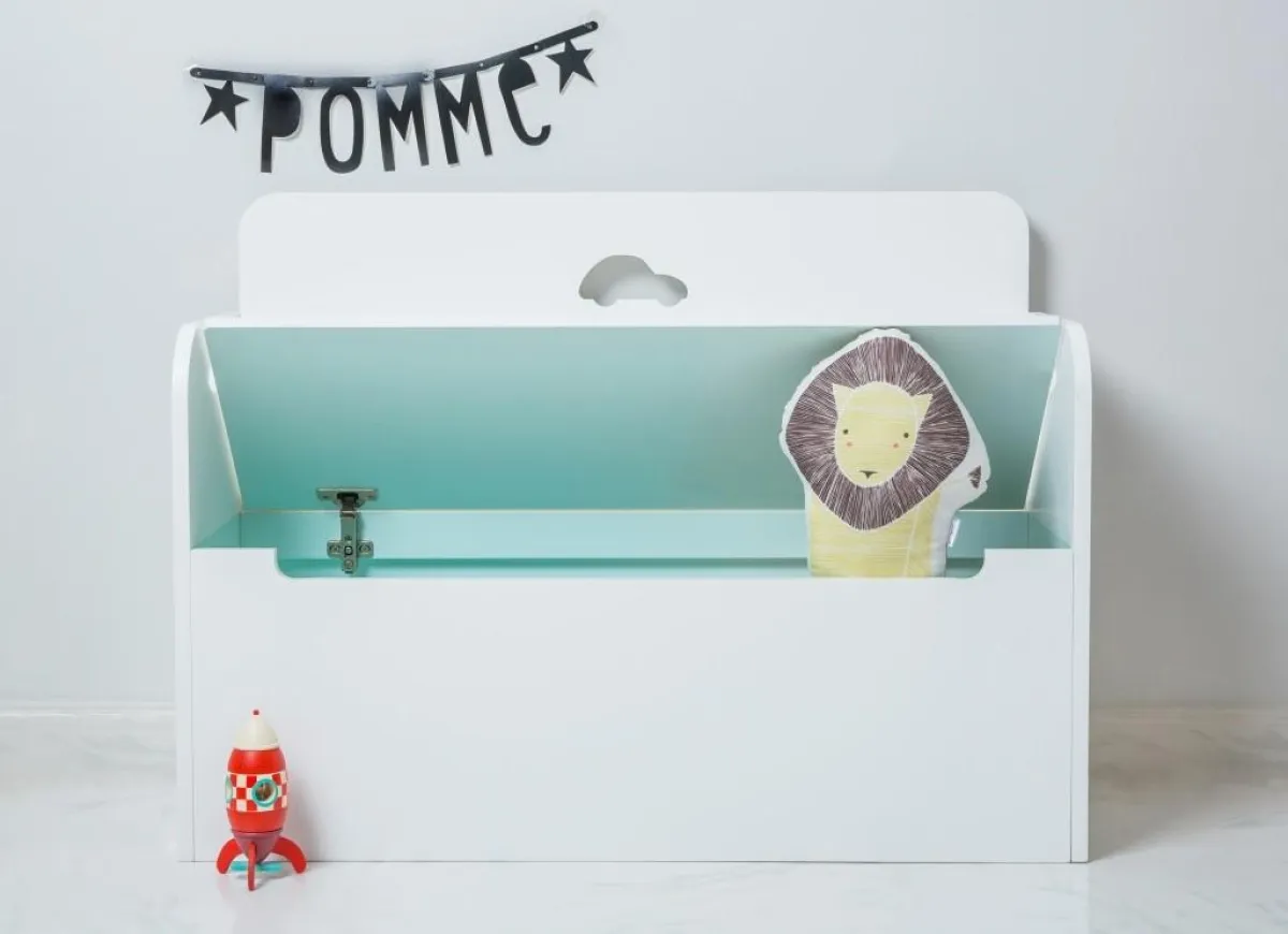يساعد على إبقاء غرف نوم الأطفال مرتبة ويطور من مهارات التنظيم لديهم. مفصل أمان فتحة سفليَّة تحت الغطاء لحماية الأصابع.