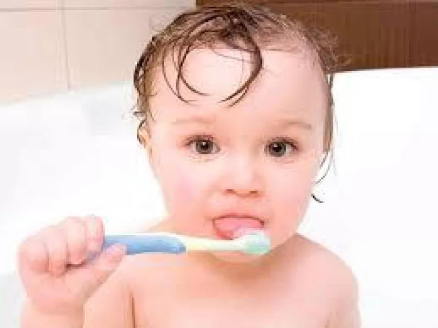 4. بعد بروز الأسنان تبدأ الأم باستعمال فرشاة بشعيرات ناعمة جداً بتنظيف أسنان طفلها مرتين يومياً، وباستعمال الماء فقط؛ حتى يعتاد على استخدام الفرشاة.