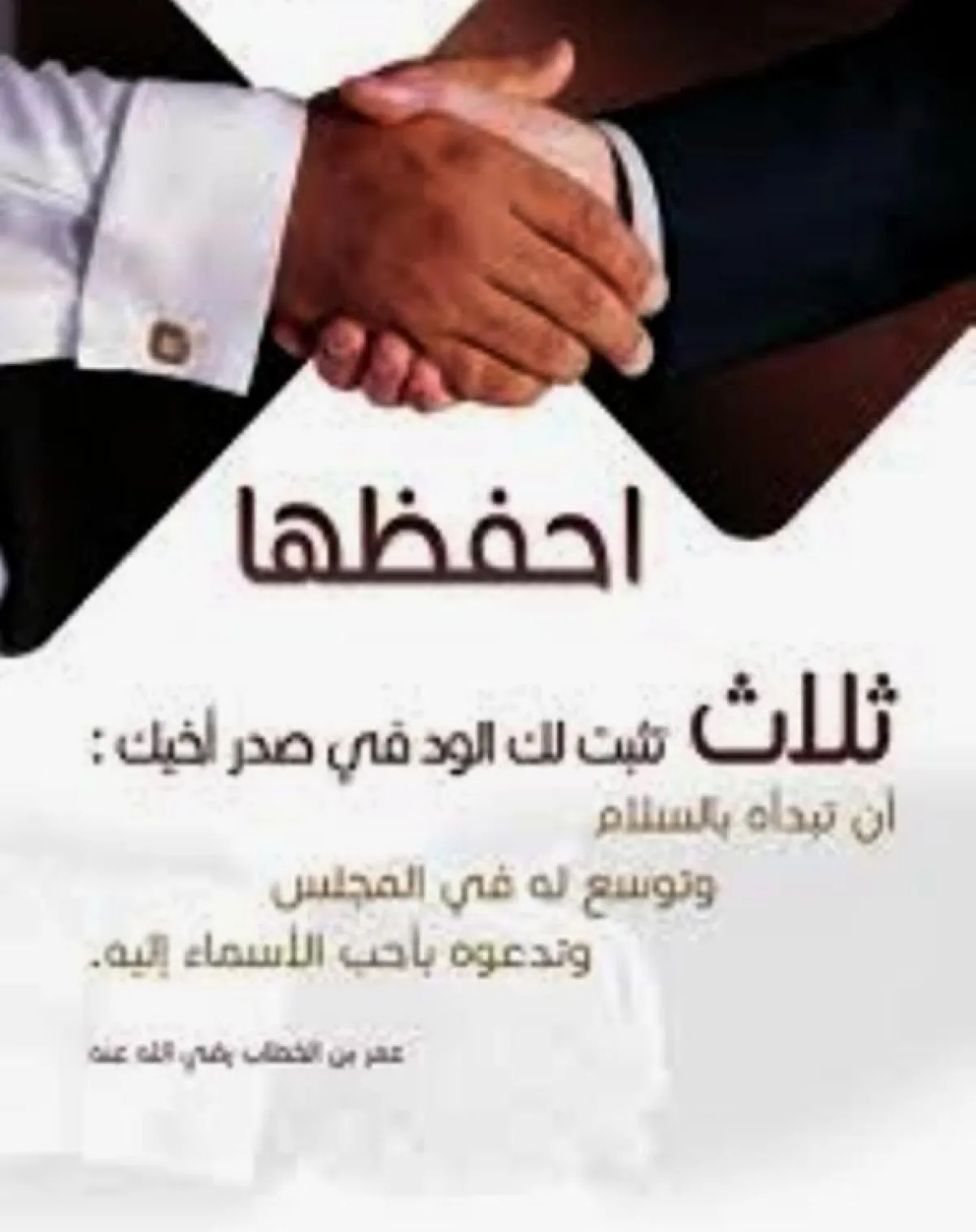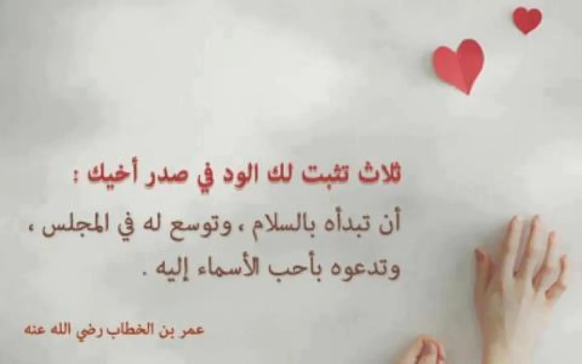 نستذكر في هذا السياق الحكمة الجميلة للصحابي الجليل عمر بن الخطاب، الذي يرسخ فيها القواعد الأساسية لثبات الود في قلب من حولك، وبثلاثة أمور بسيطة جدًا فلنتأملها جيدًا؛ يقول: ثلاث تثبت لك الود في صدر أخيك، أن تبدأه بالسلام، وتوسع له في المجلس، وتدعوه بأحب الأسماء إليه.