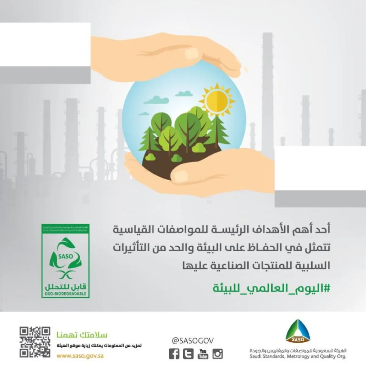 بهدف حماية البيئة، وحياة الإنسان، قررت الهيئة السعودية للمواصفات والمقاييس والجودة، حظر تداول المنتجات البلاستيكية التي لا تحمل شعار "الهيئة" المكتوب فيه أن "المنتج قابل للتحلُّل".