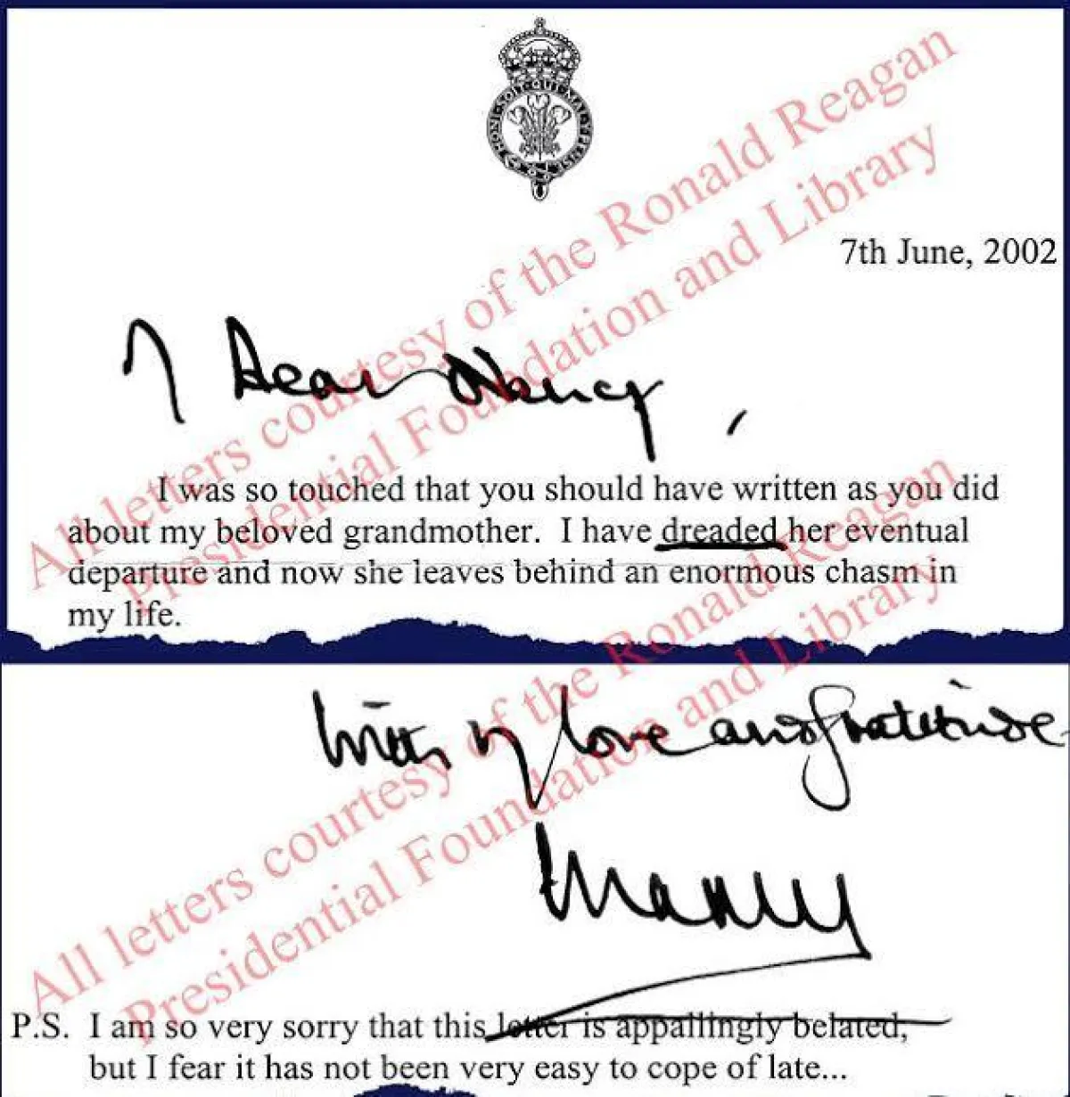 يشار إلى أنّ هذه الرسائل جزء من مجموعة نانسي ريغان الخاصة، التي تمّ تسليمها بعد وفاتها في آذار 2016، إلى مؤسّسة رونالد ريغان الرئاسيّة.