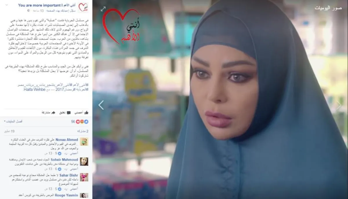 مبادرة "أنتِ الأهم" التي تمّ تأسيسها لمناسبة تخصيص العام 2017 عامًا للمرأة في مصر، نشرت صورة للفنانة هيفاء وهبي بالحجاب، وعلّقت عليها بقولها: في مسلسل الحرباية قامت "عسليّة" والتي تقوم بدورها هيفاء وهبي، بالذهاب إلى إحدى الصيدليّات لشراء غشاء بكارة، لأنّها مقدمة على الزواج، ورغم الهجوم الذي لاقاه ذلك المشهد، على صفحات التواصل الاجتماعي، إلّا أنّ هناك الكثير أيّدوا طرح هذا المشكلة، في مسلسل يشاهده ملايين من العرب، حيث أصبحت تلك التجارة منتشرة كثيرًا في الآونة الأخيرة في المجتمعات العربيّة خصوصًا، لاختزالهم فكرة الشرف في جسد المرأة وغشاء البكارة، من دون الالتفات للقيم والأخلاق والمبادئ، التي تقوم بتوجيه كلّ من الرجل والمرأة على السواء، من دون تفرقة بينهما.