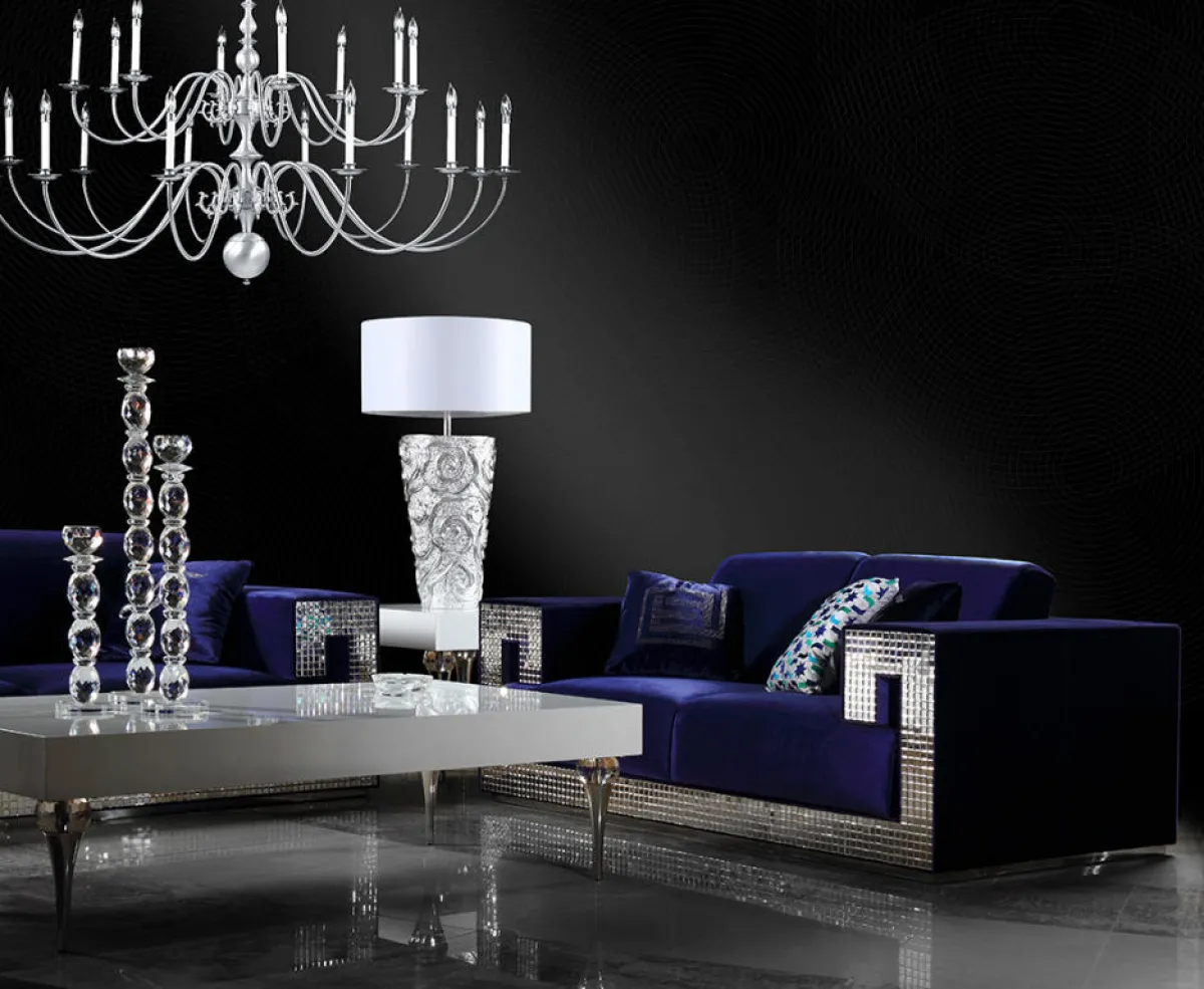 | يُفضّل اللجوء إلى "الاكسسوارات" الكريستال، عند شراء الأثاث المخمل "الرويال".