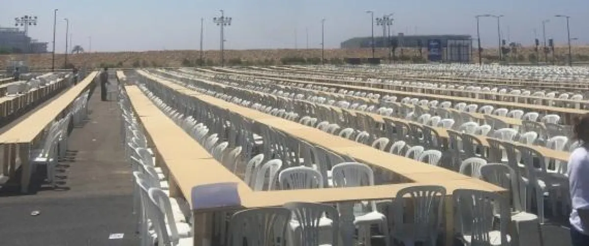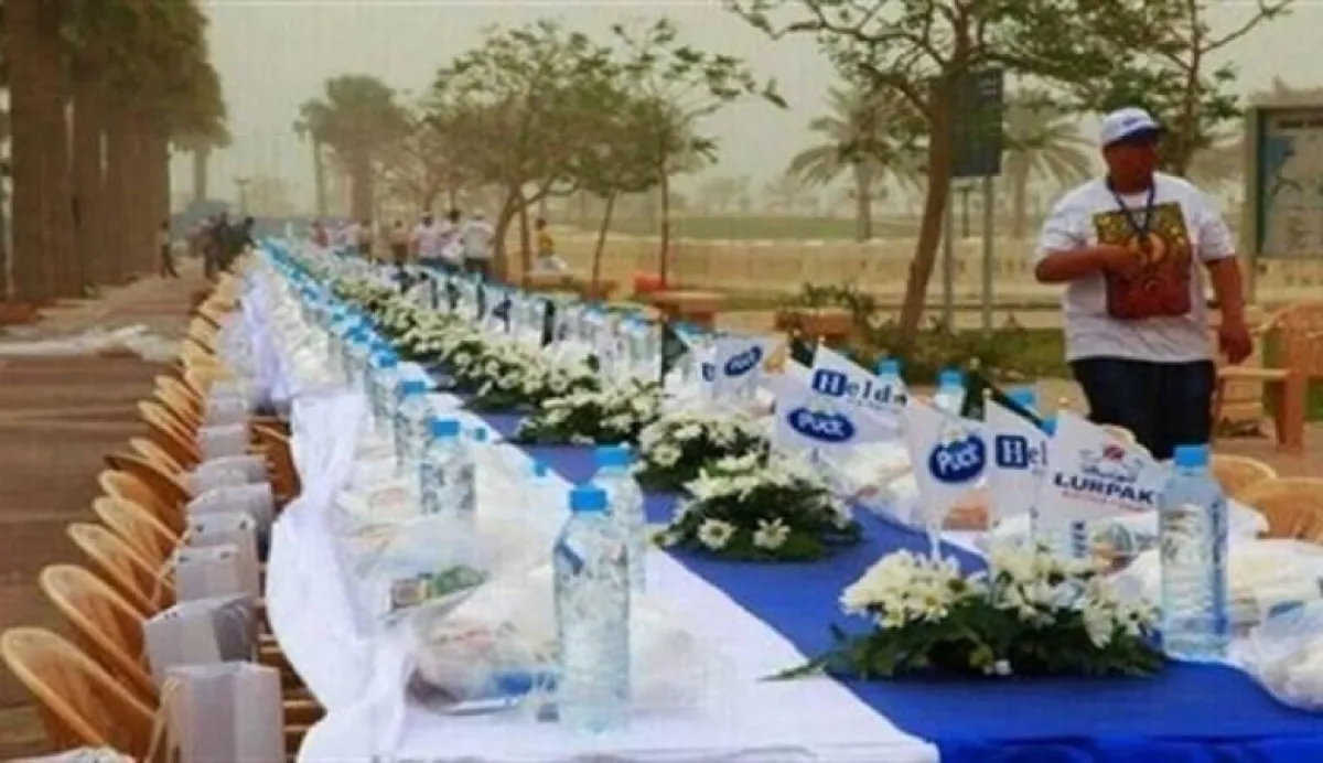 الإفطار يتضمن 10 آلاف دجاجة، و5600 فطيرة لحم، و15 ألف حبة تمر، إضافةً إلى الأرز والمعمول والسلطة، وطول الطاولة 2280 متراً.