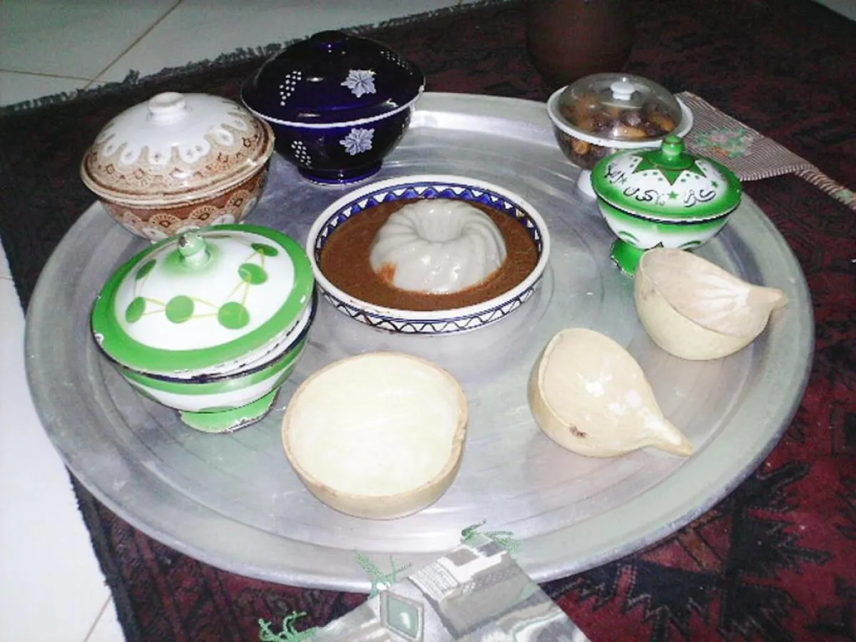 عند صلاة التراويح بالجوامع وساحات الدار الكبيرة للأسر العريقة تحضر كل أسرة كميات من المشروبات والحلويات للمصلين من الجنسين.